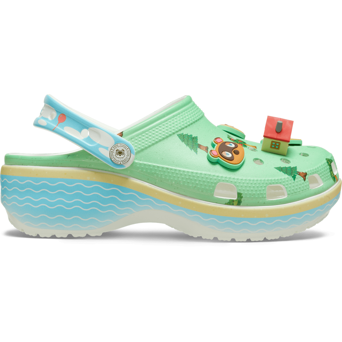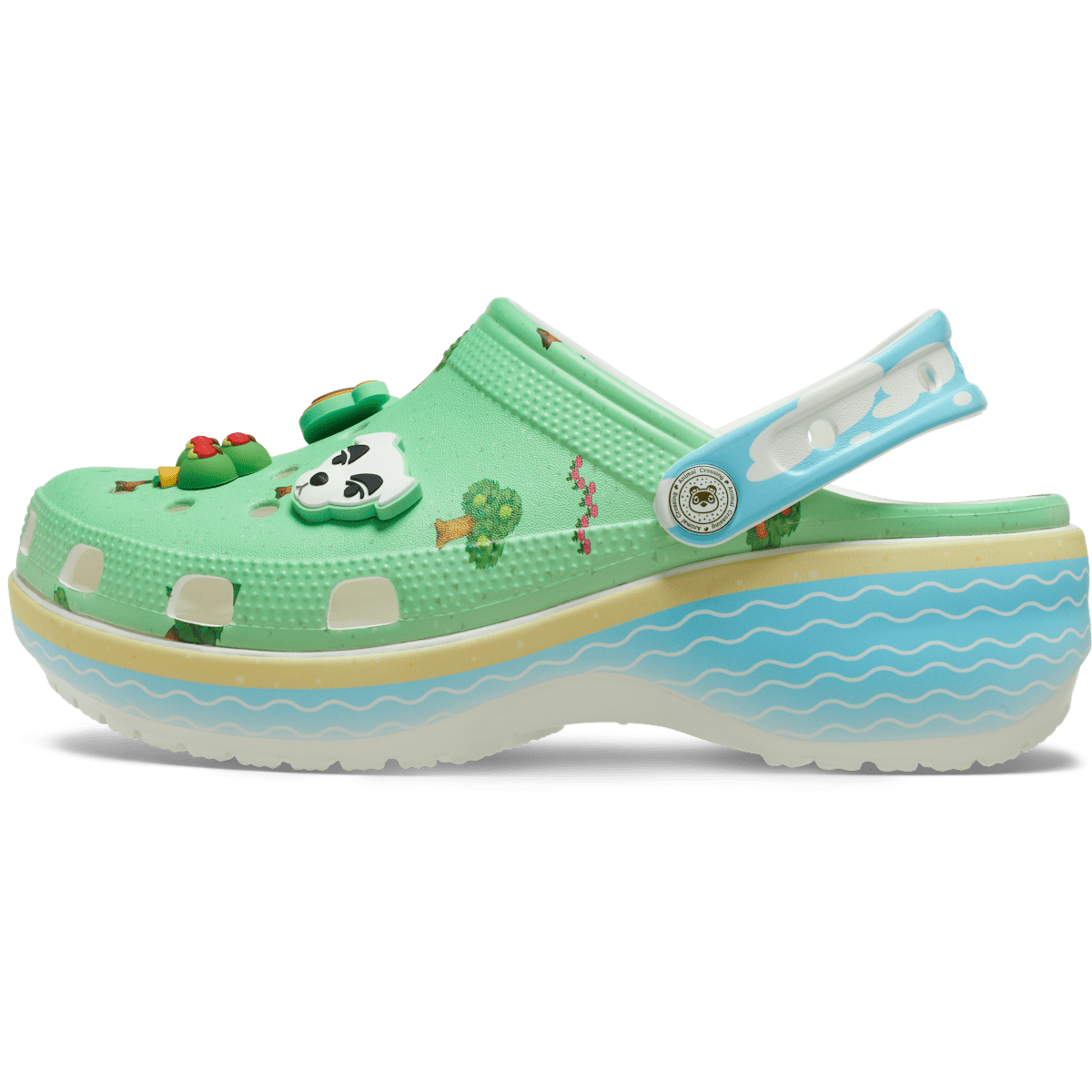 Escape to ultimate relaxation, in the Animal Crossing Classic Platform Clog. A peaceful forest on the upper and serene water scene on the sole provide the perfect setting for Jibbitzâ„¢ charms featuring villagers and elements of the game — from Isabelle to the apple tree. And you can personalize your look even more with additional Jibbitzâ„¢ charms. Get a pair — you’ll live in them!