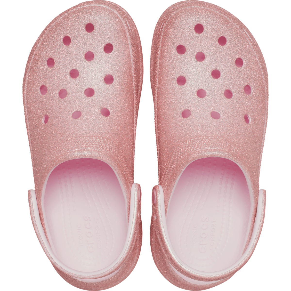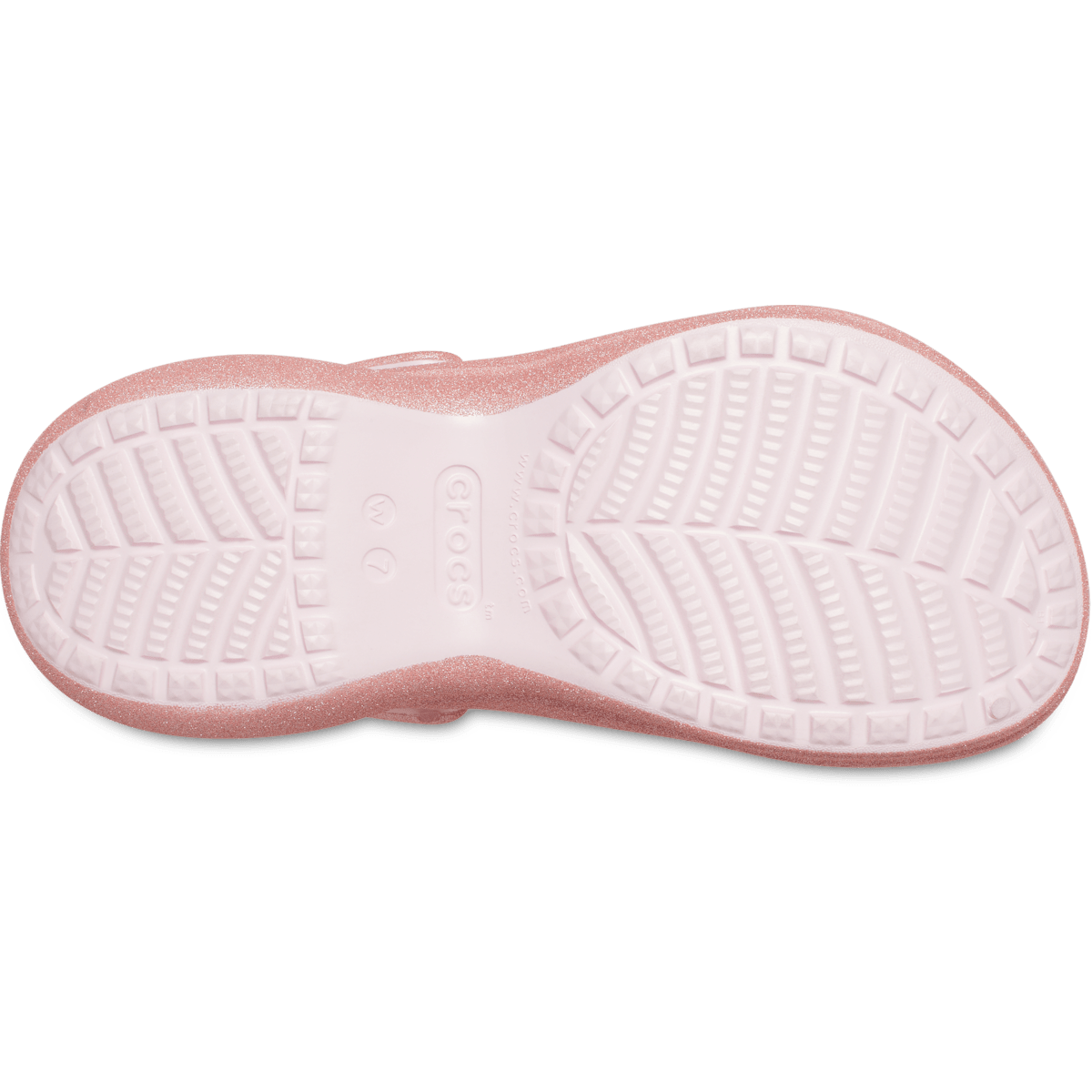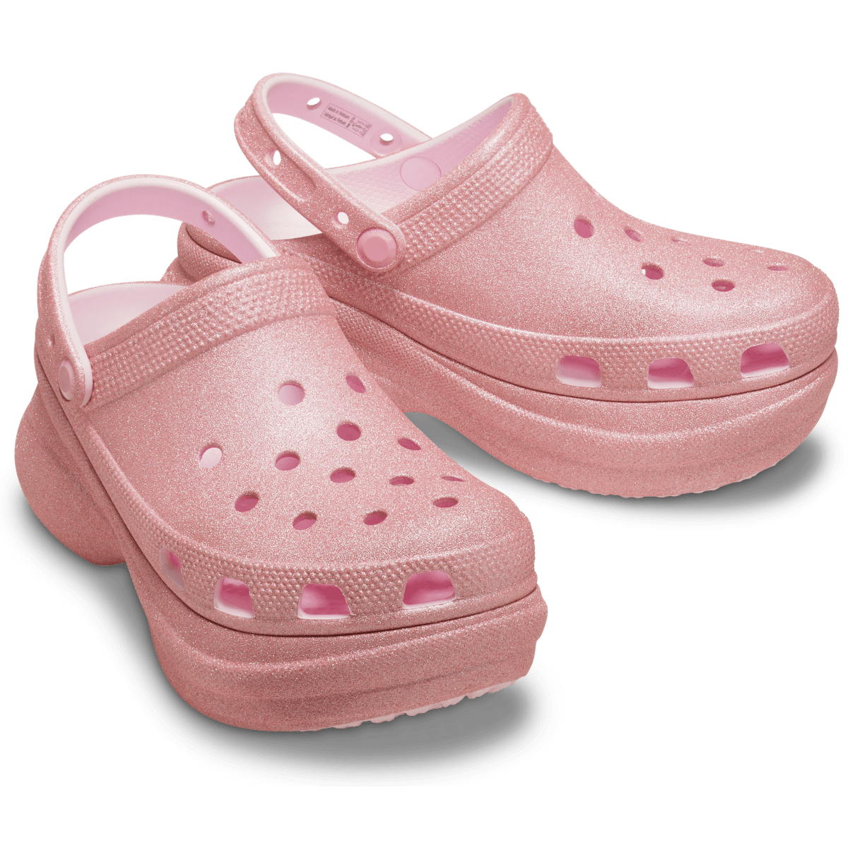 The Classic Clog has been reimagined with an extra dose of height, attitude, and style. Introducing the Crocs Classic Bae, featuring a stunning glitter treatment, an ultra-contoured outsole that supports the upper you know and love — but there’s more. The new customizable backstrap also holds Jibbitz™ charms, so you can personalize your look even more. When you’re feeling a little extra, flaunt it fearlessly in the Crocs Classic Bae.