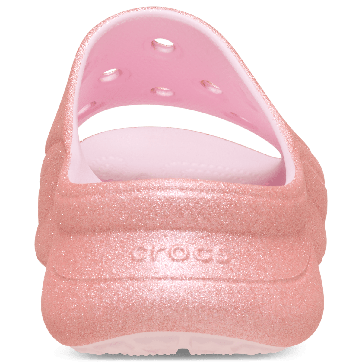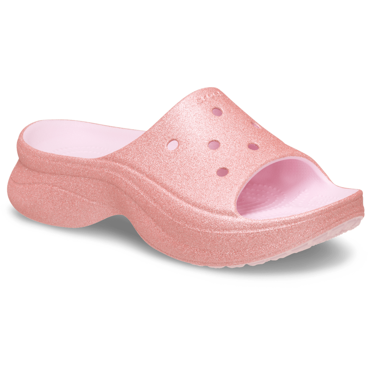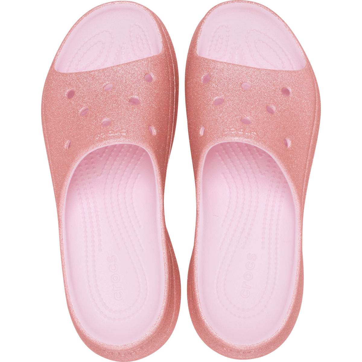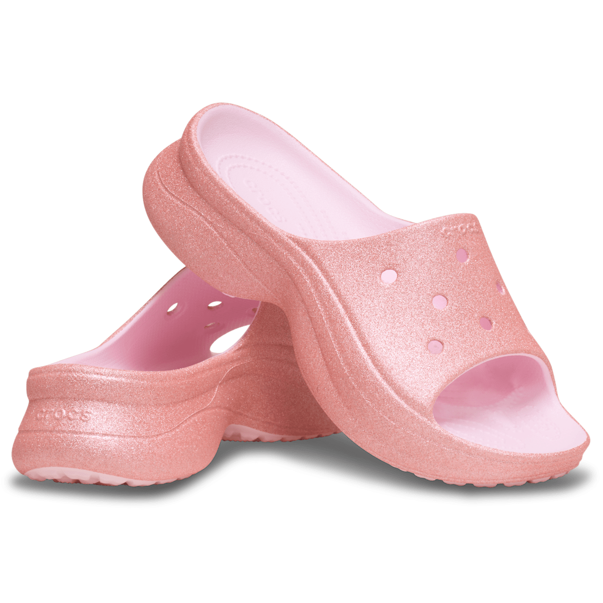 The Classic Slide has been reimagined with an extra dose of height, attitude, and style. Introducing the Bae Glitter Slide, featuring an ultra-contoured outsole, feminine fit, bold style, versatile height, and glitter treatment. There’s also a deep heel cup, designed to help improve your comfort and wearing experience. Plus, the upper holds Jibbitz™ charms, so you can show off your unique personality. When you want a versatile slide that feels a little extra, slip into the Bae Glitter Slide.