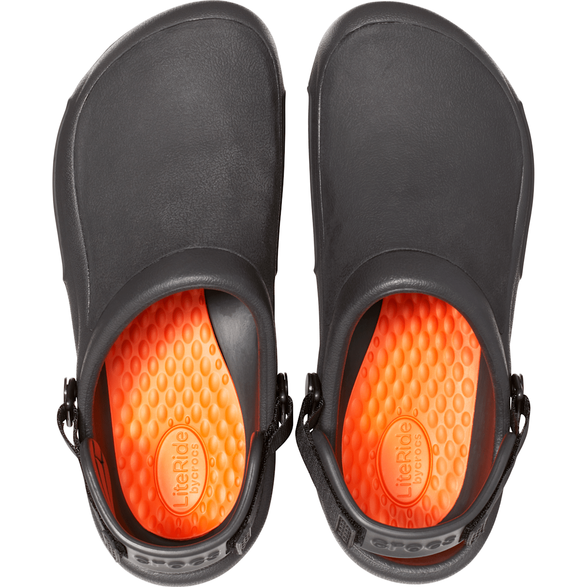 Choose your culinary inspiration and serve up some serious comfort with these Bistro Pro Clogs. This updated version is available with superb LiteRide⢠foam footbeds inside. Designed with food service, hospitality, and healthcare workers in mind, theyāre light and supportive enough to get you through even the longest shifts. Crocs Lock⢠slip-resistant treads and extra protection at the toes come together to help you serve up your best.