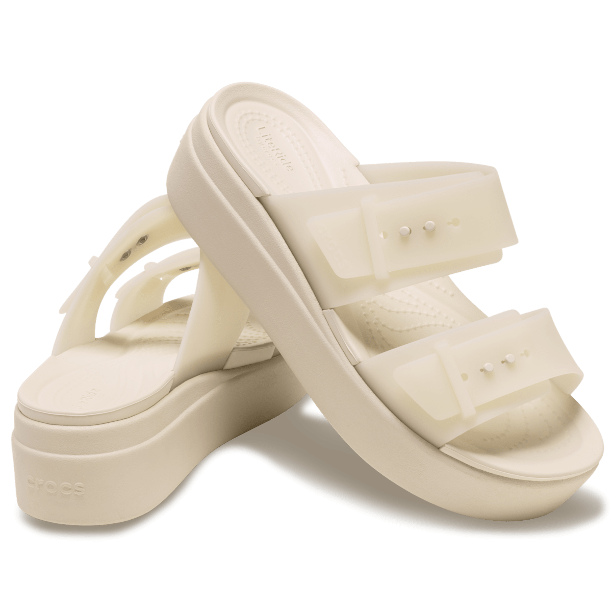 Effortless style, superior all-day comfort and ultimate wardrobe versatility come together in the Crocs Brooklyn Collection. Featuring innovative LiteRide™ foam technology inside — because you should never have to choose between looking and feeling your best. The two adjustable straps on the Brooklyn Sandal Low Wedge provide you with excellent fit and versatile styling. And this version features our new trend-right frosted matte finish, offering a subtle translucence and tint of color, with a hint of iridescence. With Brooklyn’s lightweight construction and revolutionary comfort technology, you can move confidently from work to play without a fuss.