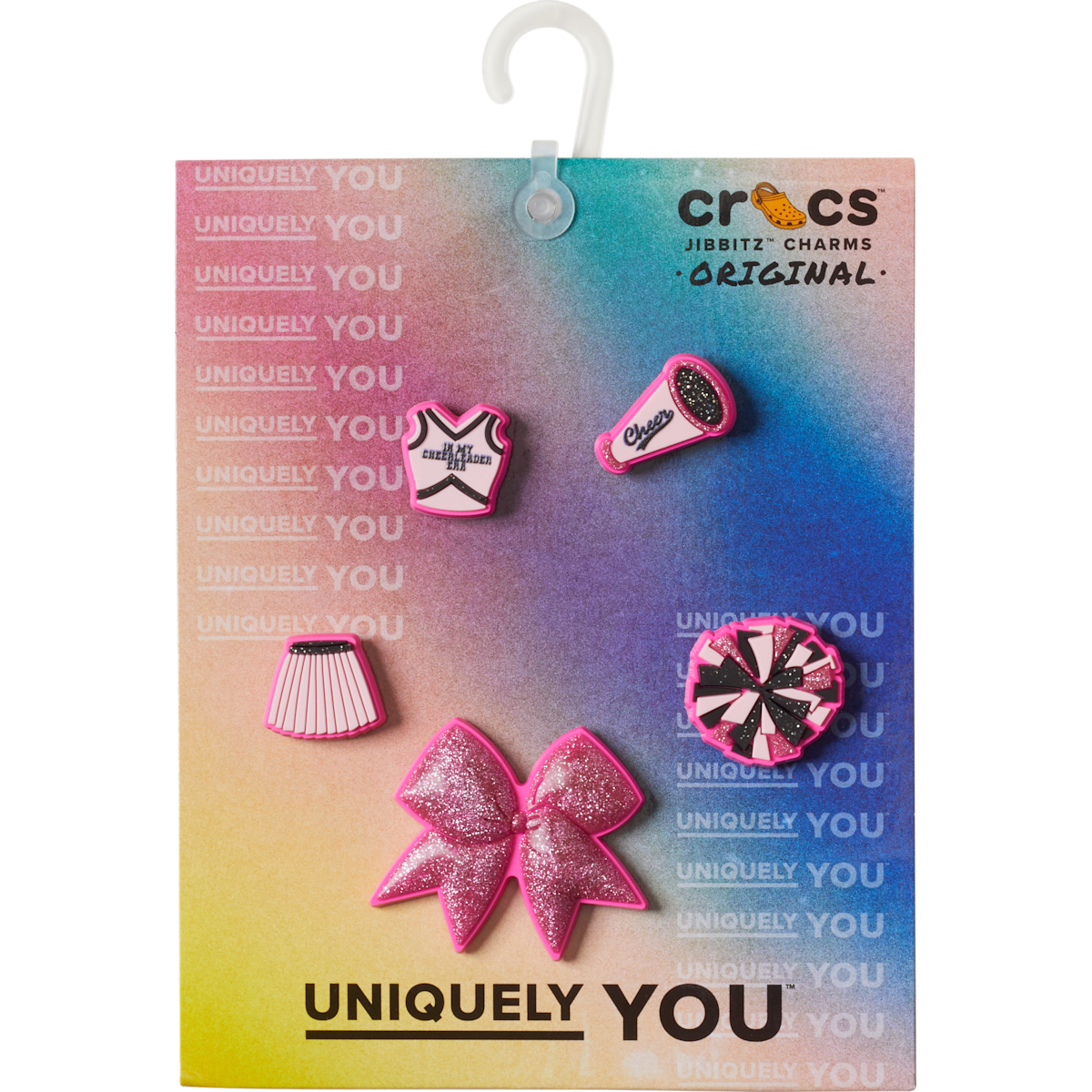 Pop some personality into your shoes with these Cheerleading 5 Pack Jibbitz™ charms. They’re the perfect addition to your favorite pairs of clogs, slides, and more.