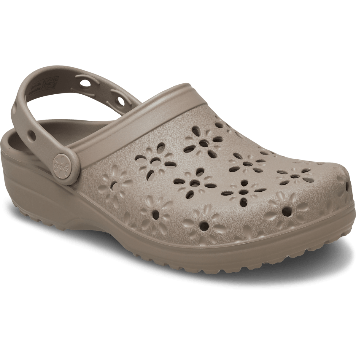 The Classic Clog with a fresh, feminine twist! This new evolution of our clog features floral-inspired cutouts that provide a joyful, fun look, plus matching floral rivets that unify the design. You’ll still enjoy the fully-molded lightweight construction and iconic comfort of the original, and you can still add personalization with Jibbitz™ charms. It’s the irreverent, go-to comfort shoe that you love — now with a fun, floral update!