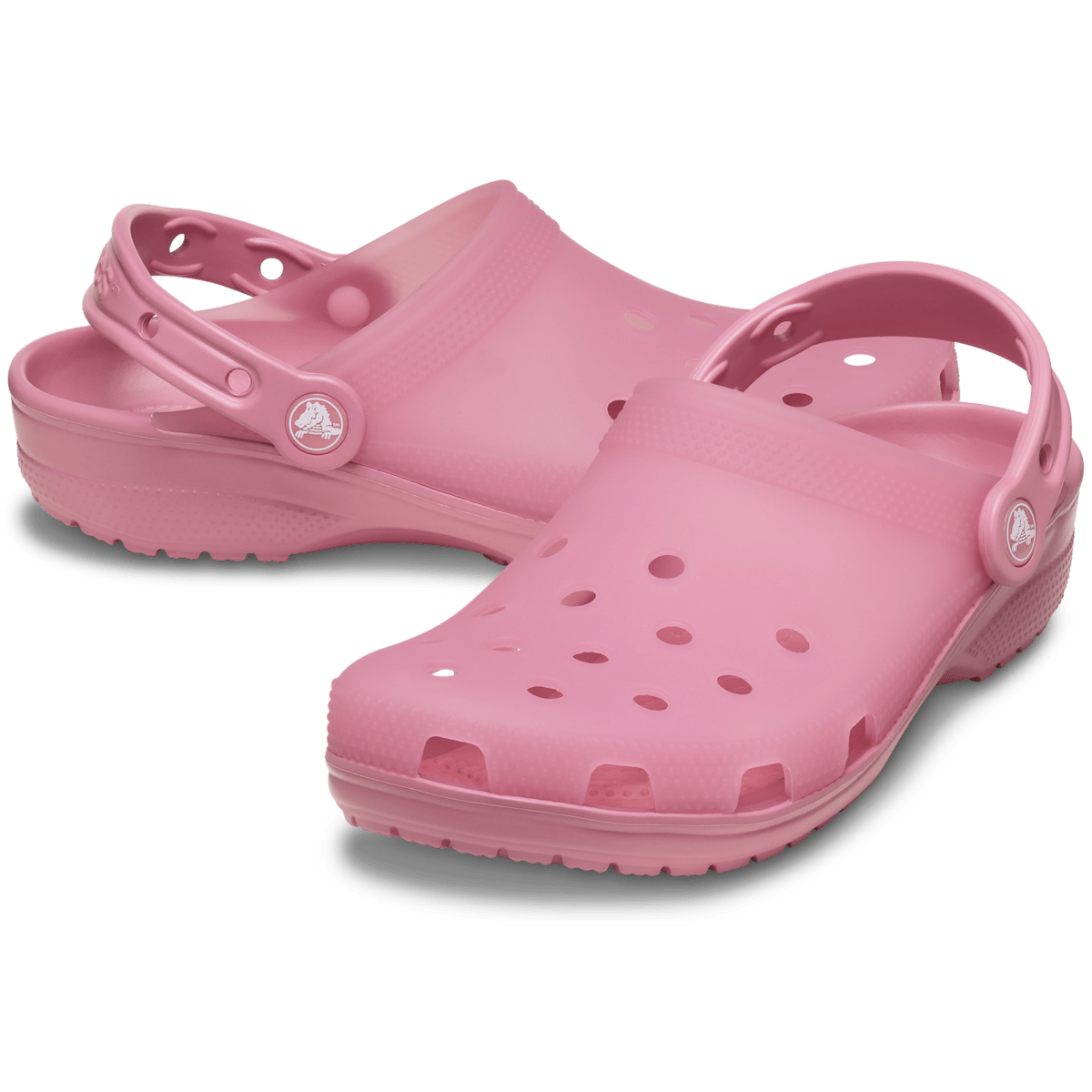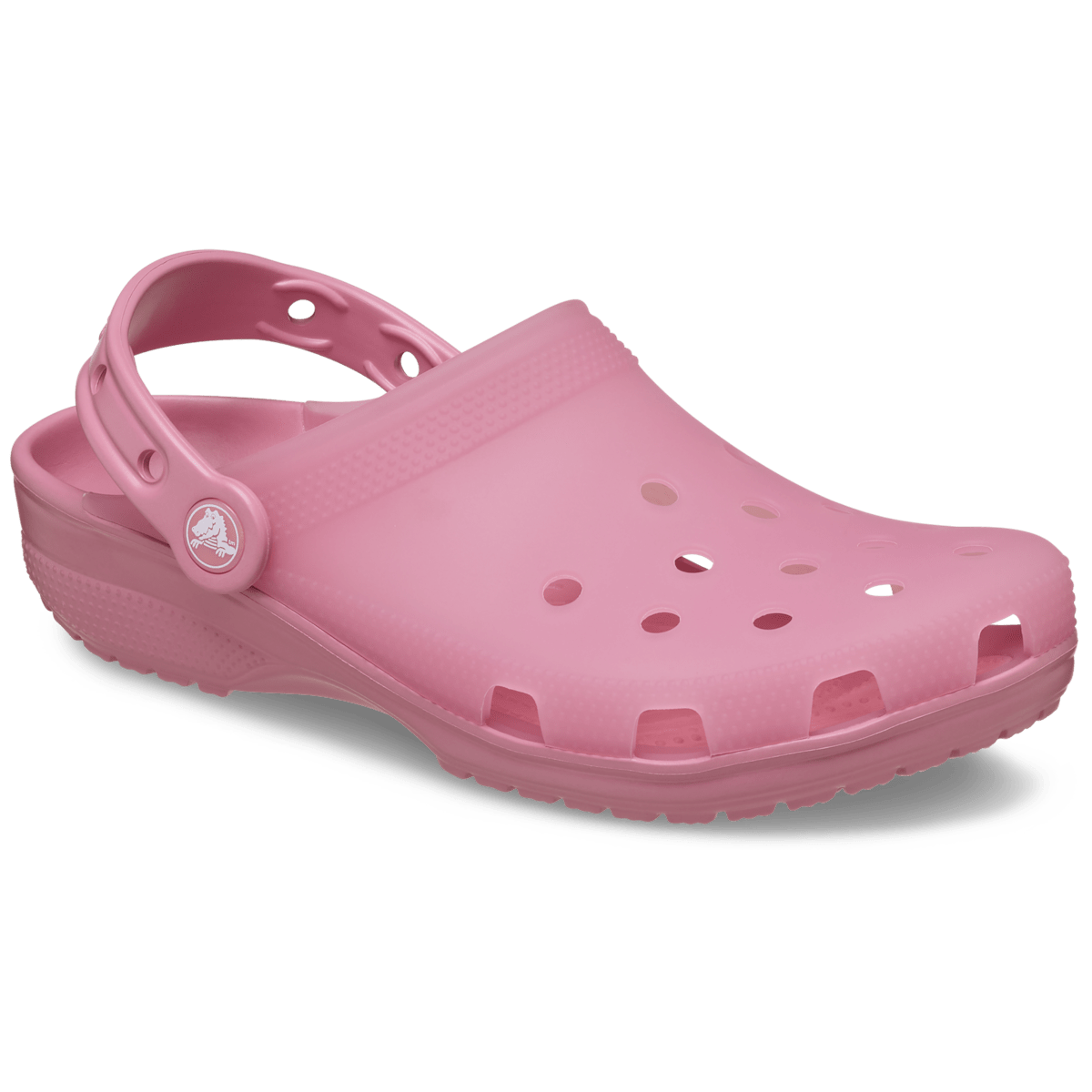 The iconic clog that started a comfort revolution around the world — now with a stylish frosted upper. Our new frosted matte finish offers a subtle translucence and tint of color. Plus, you can easily add Jibbitz™ to add more of your personal style. Still the irreverent go-to comfort shoe that you love, the Classic Frosted Clog offers lightweight Iconic Crocs Comfort™ and an ongoing invitation to be comfortable in your own shoes.