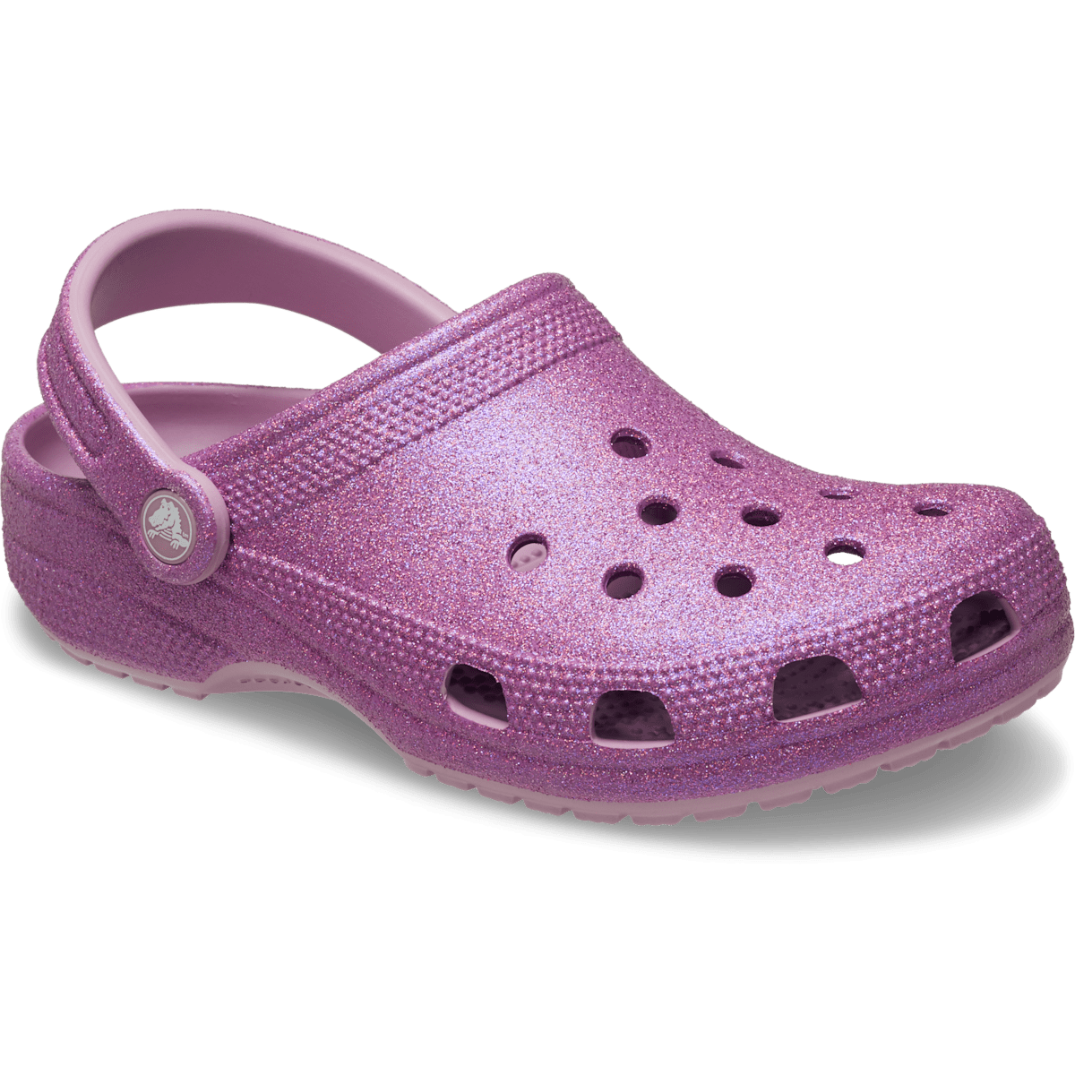 A new iridescent glitter treatment provides extra style to this version of the iconic clog. The sparkly glitter changes color when you look at it from different angles, making these extra fun, and Crosliteâ„¢ foam construction keeps them light and easy to wear. Also available for kids and toddlers, so you can get matching pairs for a fun full family moment. Grounded in comfort, spiked with personality. Sparkle on!