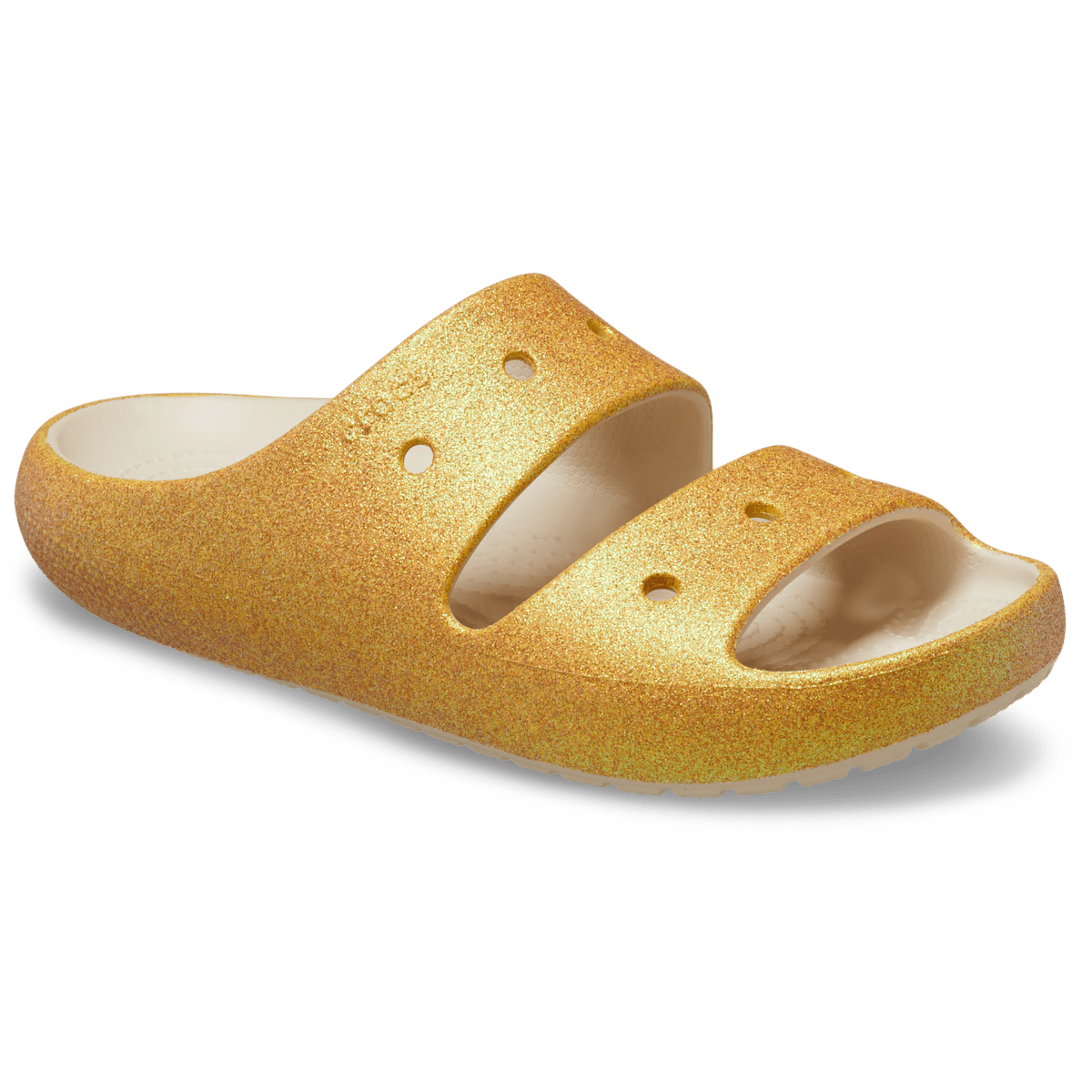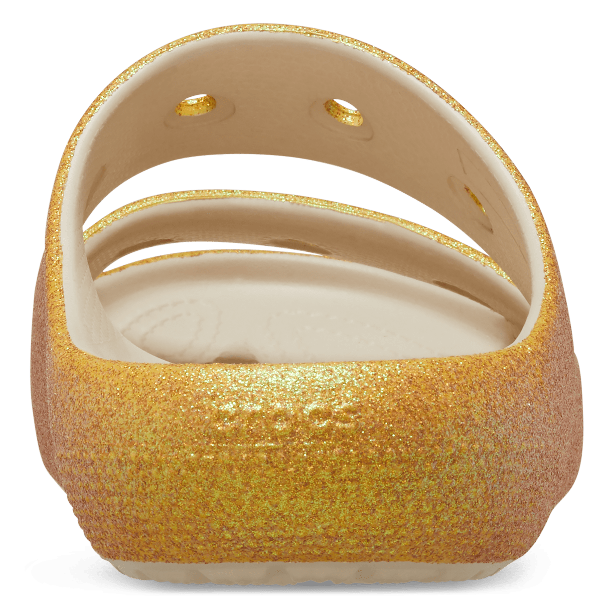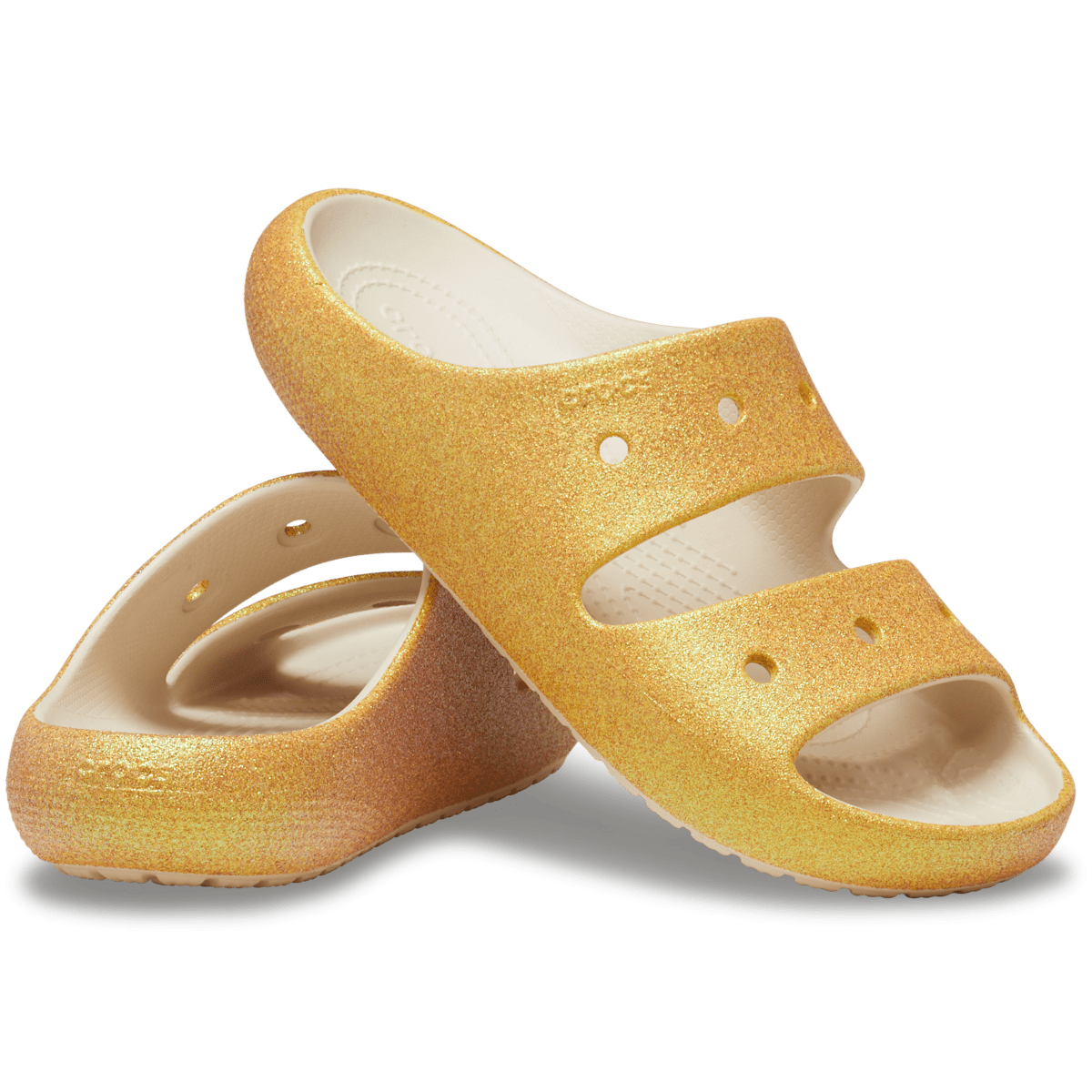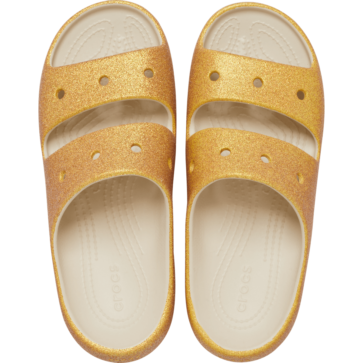 A new iridescent glitter treatment provides extra style to our new and improved Classic Sandal. Building on bold simplicity and versatility, we’ve updated the sandals most important aspects: the fit, feel, and look. The updated, modernized silhouette now cups the whole foot in our Iconic Crocs Comfort™, and we kept the Jibbitz™ holes, allowing you to put your personality on full display. Plus, this version features sparkly glitter that changes color when you look at it from different angles, making these extra fun!