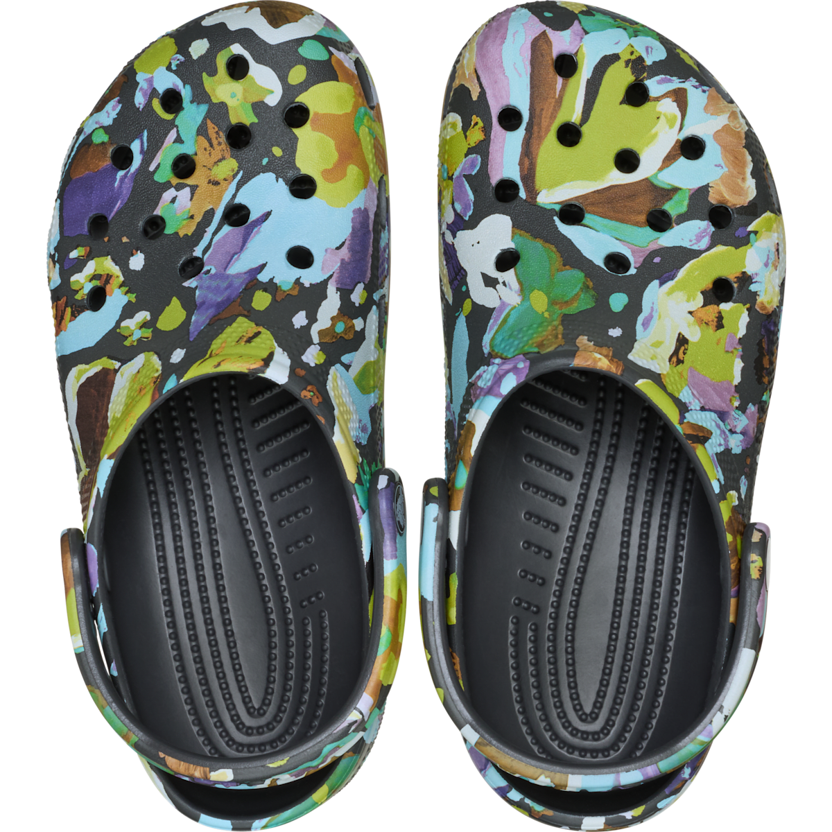 A unique painted floral graphic provides extra style to this version of the iconic clog. The artistic graphic helps you show off your creative spirit, and Crosliteâ„¢ foam construction keeps them light and easy to wear. Grounded in comfort, spiked with personality.