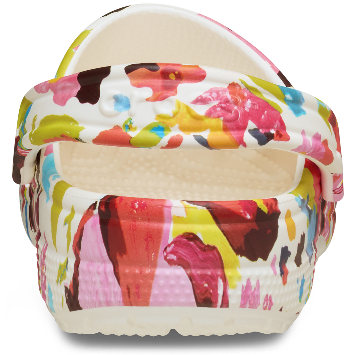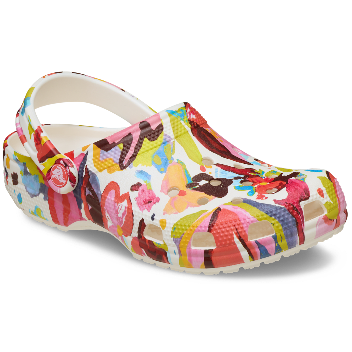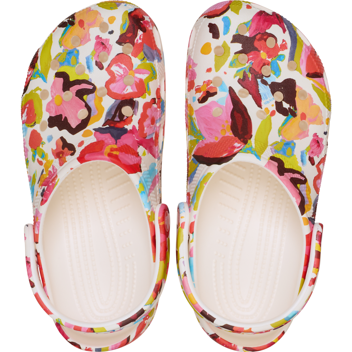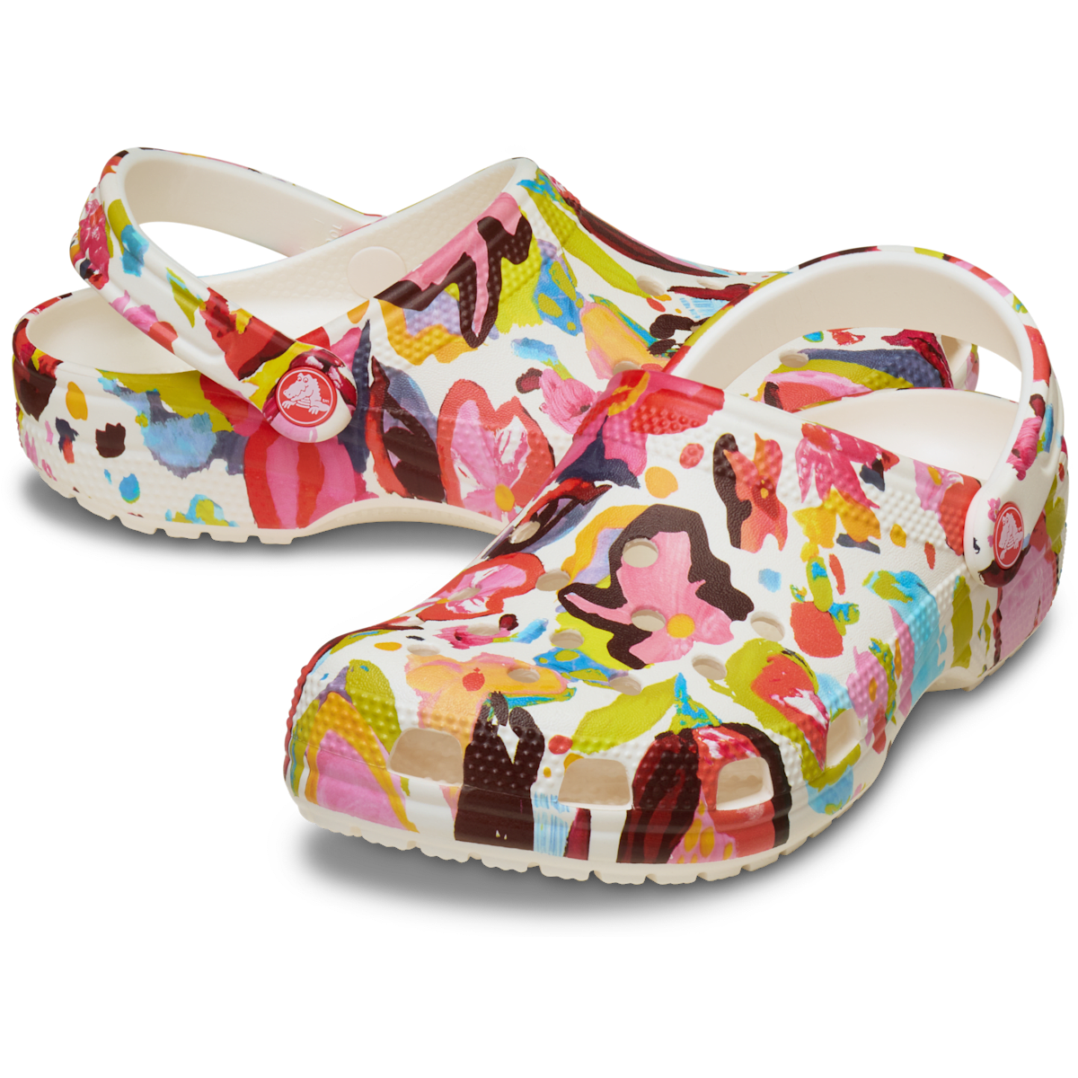 A unique painted floral graphic provides extra style to this version of the iconic clog. The artistic graphic helps you show off your creative spirit, and Crosliteâ„¢ foam construction keeps them light and easy to wear. Grounded in comfort, spiked with personality.