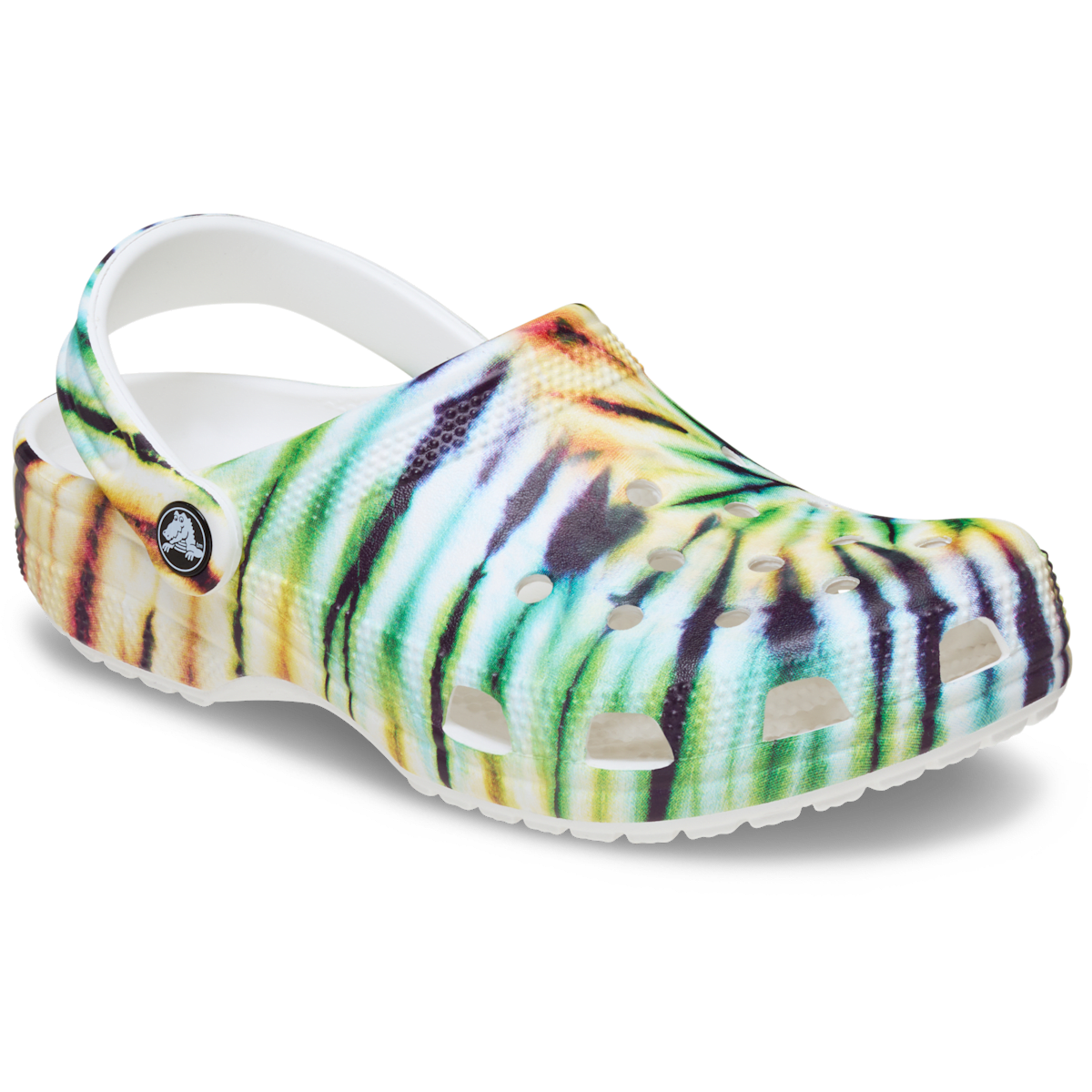 Timeless, fun and full of peaceful good vibes, the colorful tie-dye graphics on these clogs are the perfect way to make a groovy style statement. On the go or just hangin’ out. Croslite™ foam construction will keep you comfortably supported as the tie-dye graphics boost your style. Grounded in comfort, spiked with personality.