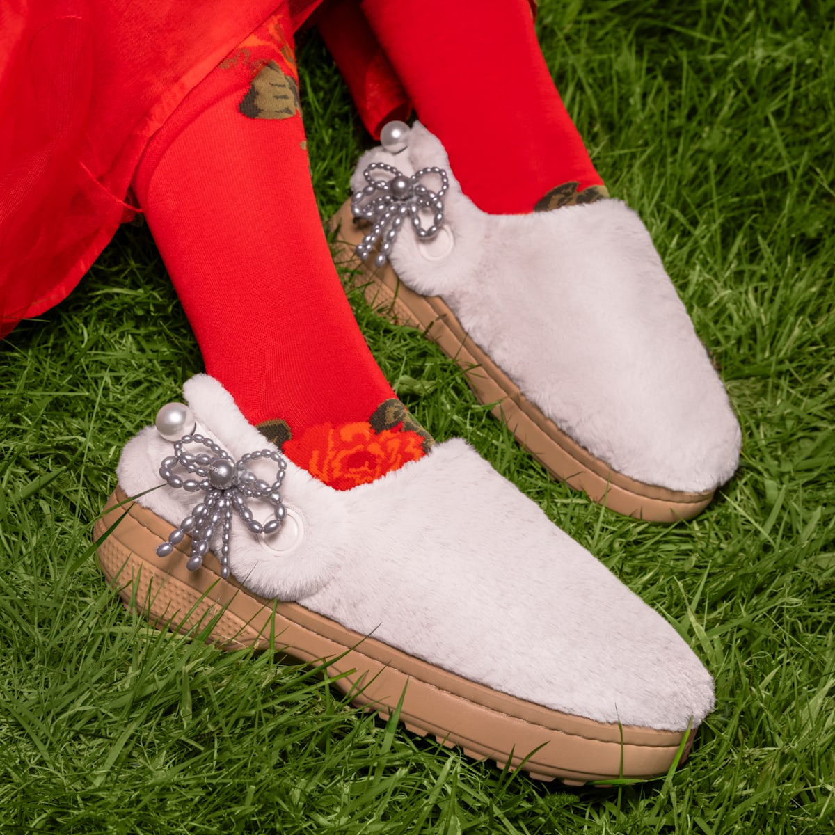 - Pivoting faux fur backstrap with Jibbitz™ holes for personalization