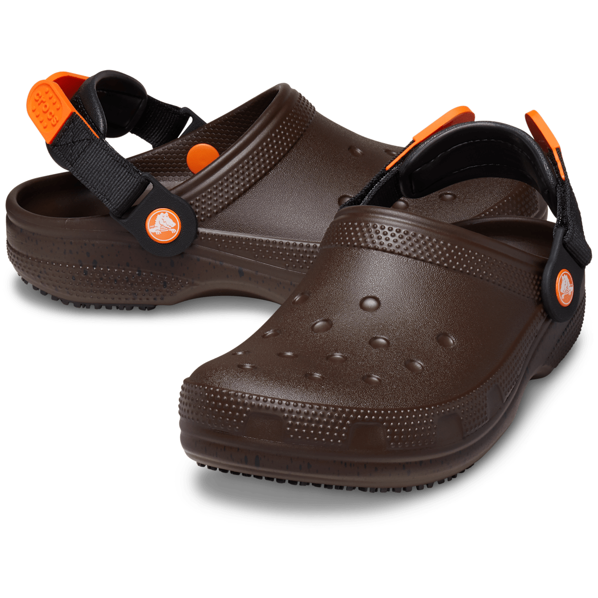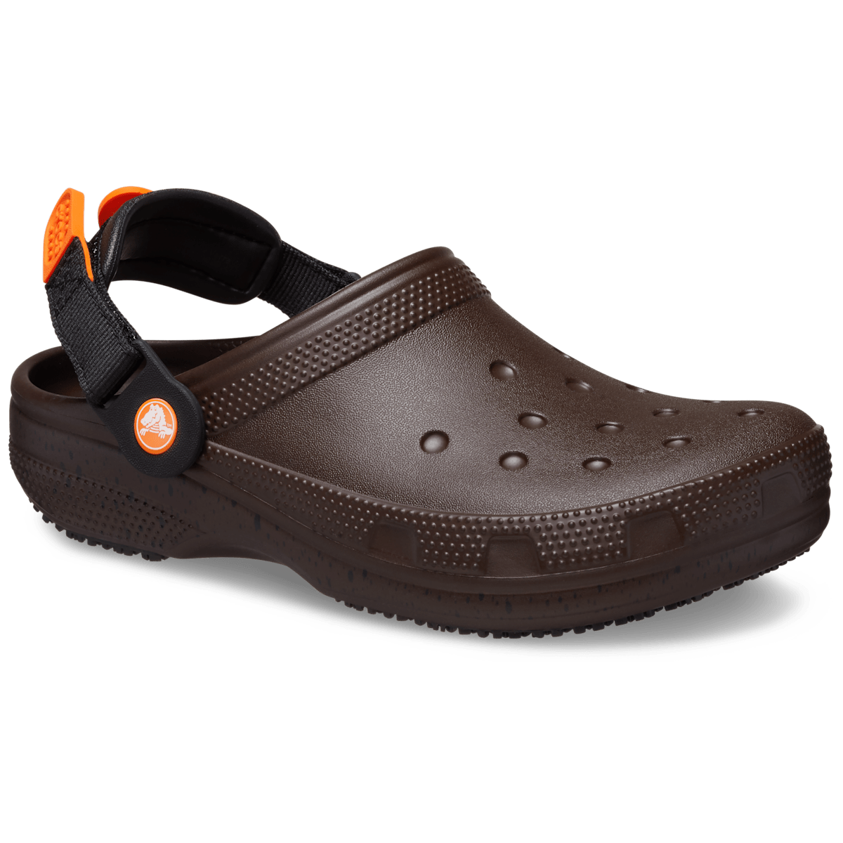 When you’re on your feet working for long hours, the Classic Work Clog gives you the comfort and features that work as hard as you do. Designed with food service, hospitality and healthcare workers in mind, these clogs feature Crocs Lock™ slip-resistant tread, an adjustable backstrap, enclosed toe design, and a waterproof upper. These premium features combine with a light and supportive design to help you get through even the longest shifts.