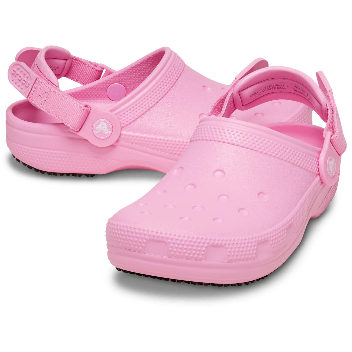 When you’re on your feet working for long hours, the Classic Work Clog gives you the comfort and features that work as hard as you do. Designed with food service, hospitality and healthcare workers in mind, these clogs feature Crocs Lock™ slip-resistant tread, an adjustable backstrap, enclosed toe design, and a waterproof upper. These premium features combine with a light and supportive design to help you get through even the longest shifts.