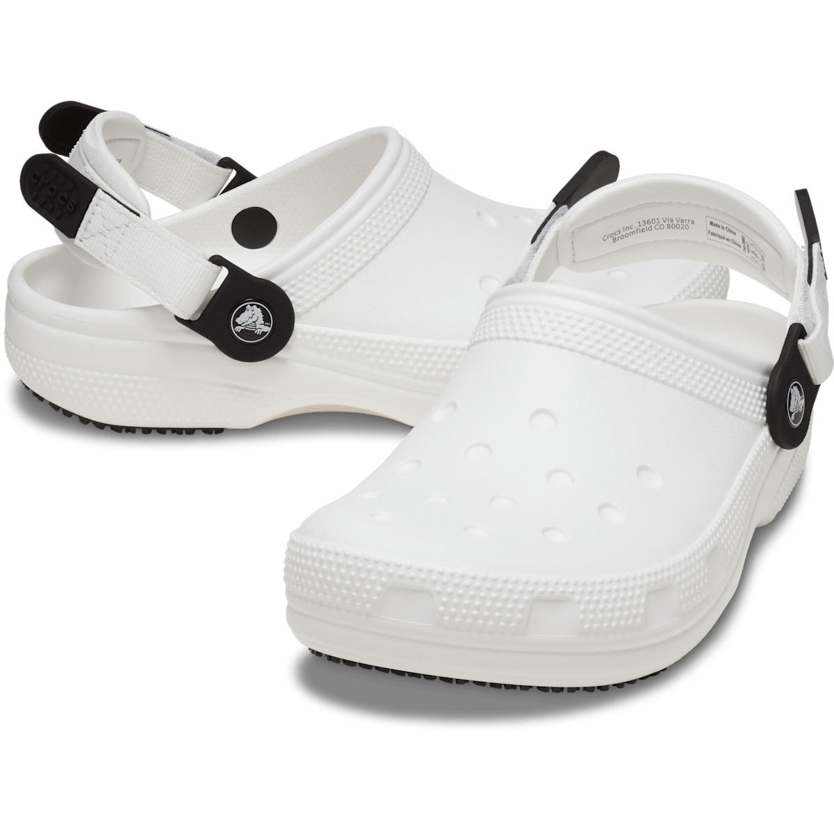 When you’re on your feet working for long hours, the Classic Work Clog gives you the comfort and features that work as hard as you do. Designed with food service, hospitality and healthcare workers in mind, these clogs feature Crocs Lock™ slip-resistant tread, an adjustable backstrap, enclosed toe design, and a waterproof upper. These premium features combine with a light and supportive design to help you get through even the longest shifts.