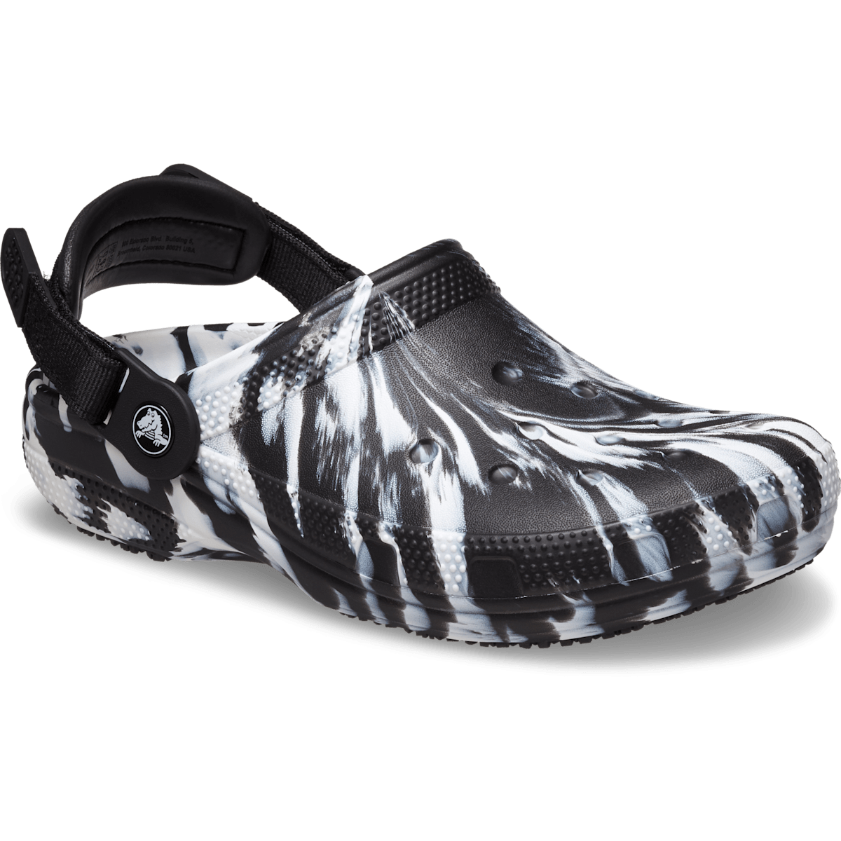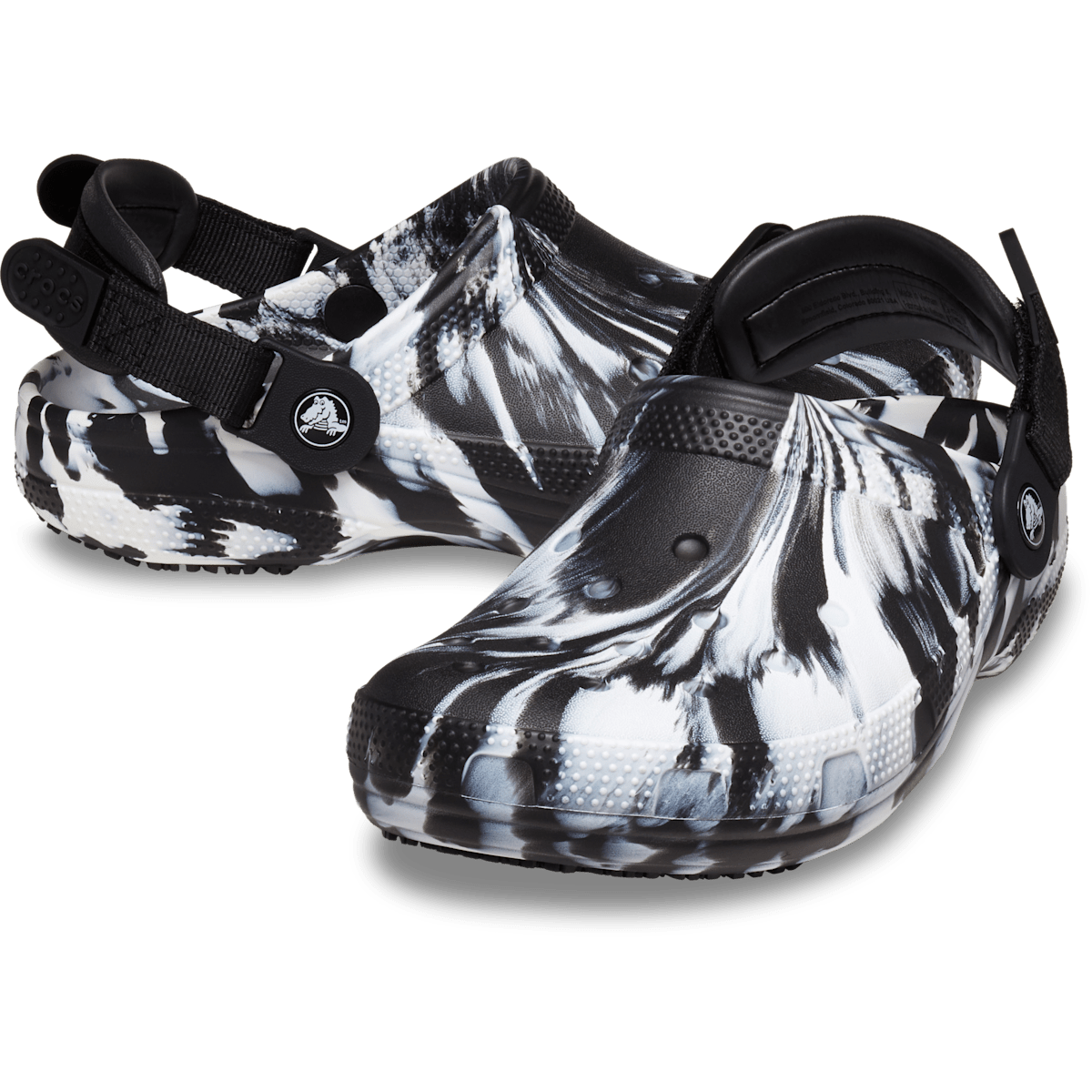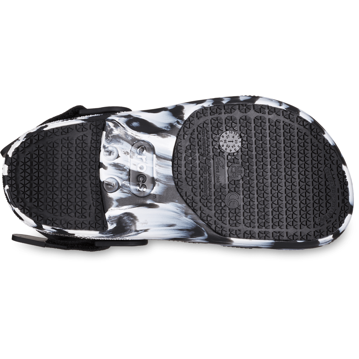 When you’re on your feet working for long hours, the Classic Work Clog gives you the comfort and features that work as hard as you do. Designed with food service, hospitality and healthcare workers in mind, these clogs feature Crocs Lock™ slip-resistant tread, an adjustable backstrap, enclosed toe design, and a waterproof upper. These premium features combine with a light and supportive design to help you get through even the longest shifts. Plus, this version features a unique graphic for added style.