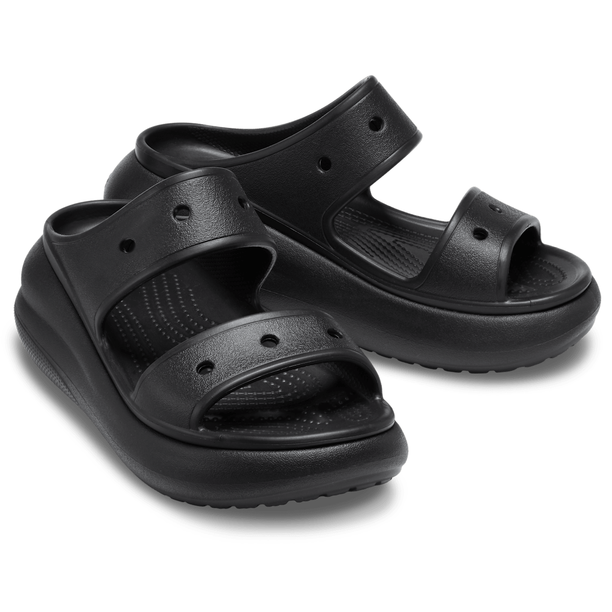 For a fresh new take on your favorite sandal, look to the Classic Crush Sandal. Featuring added height and a bold design, this dynamic new sandal features the popular and versatile two-strap design, plus Jibbitzâ„¢ holes on the sandal straps for personalization. The Crocs comfort you love, plus an extra dose of height, attitude, and style.