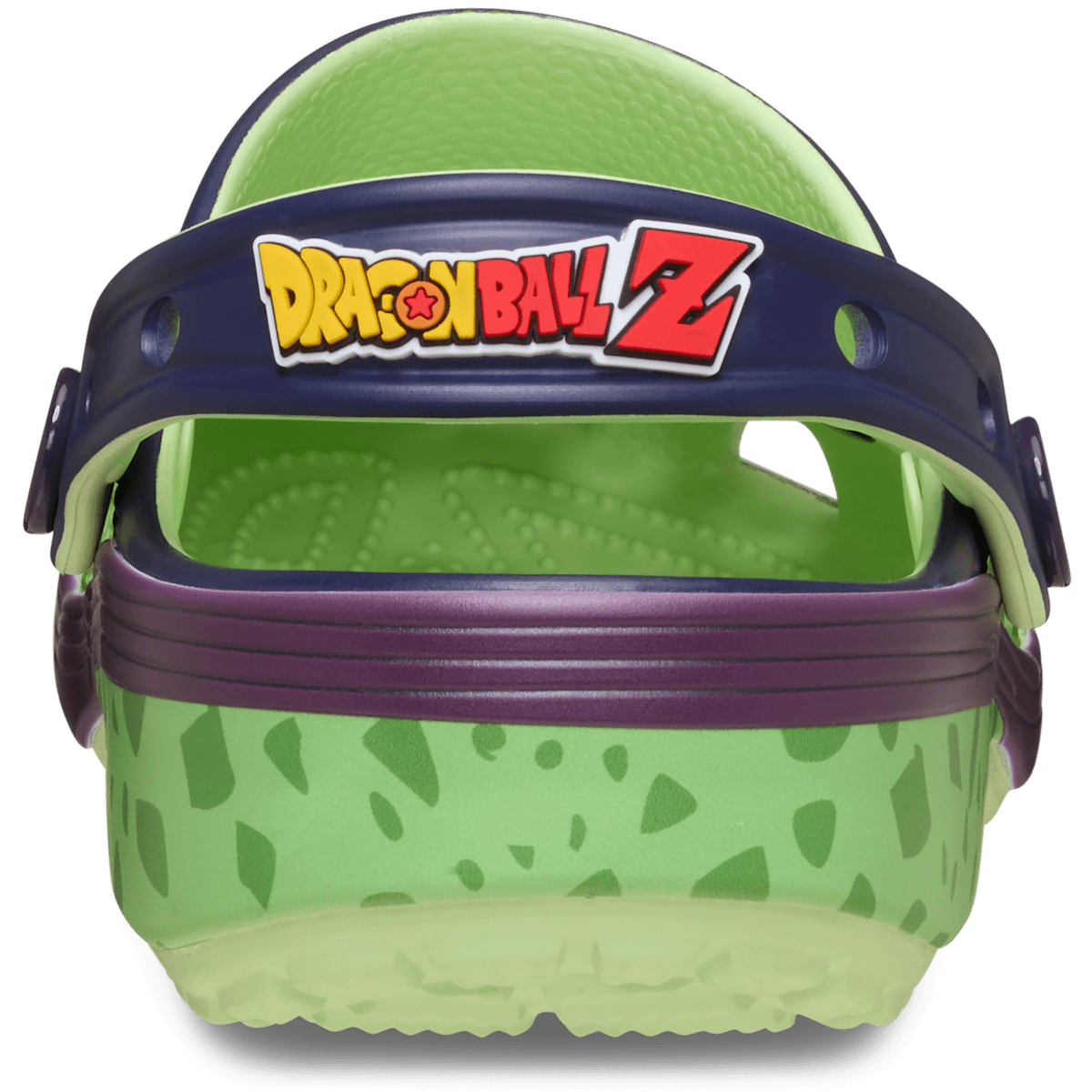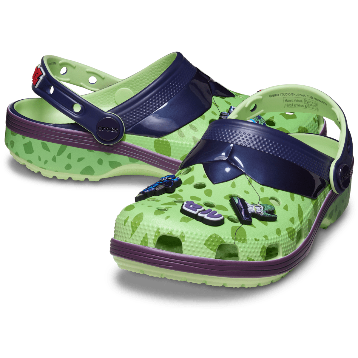 Transform your look like Cell in the new Dragon Ball Z Cell Classic Clog. This villainous clog features a green speckle treatment and high-shine navy blue elements mirroring Cell’s body. Five Jibbitz™ charms are included featuring his various forms and a Red Ribbon Army charm. Will this be your ultimate form? Step in and find out.
