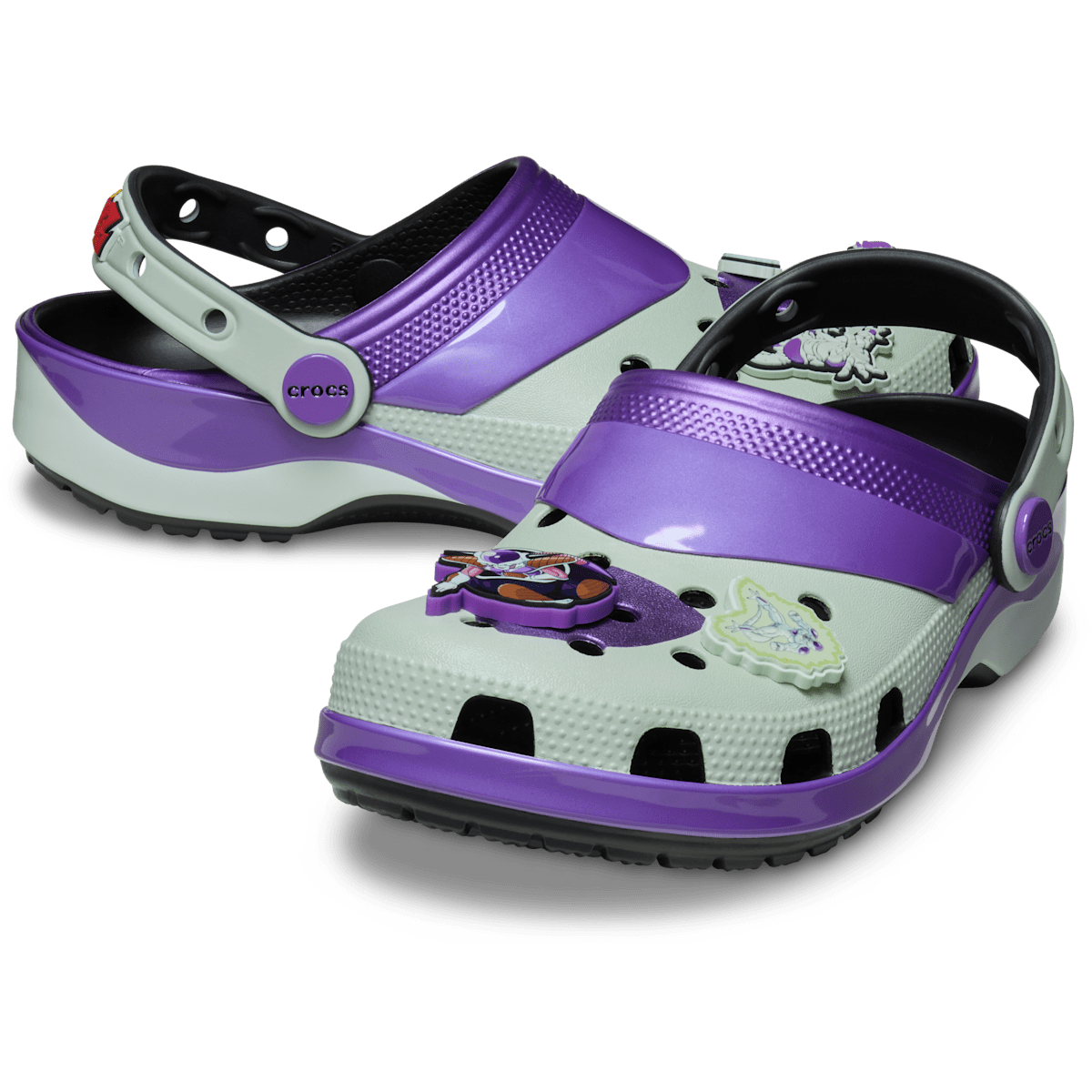 The universe is yours! Step into the world of Dragon Ball Z in the new Dragon Ball Z Frieza Classic Clog. This villainous clog features a white base with elements of high-shine purple, just like Frieza’s iconic look. Five Jibbitz™ charms are included on each pair, three of which depict Frieza’s many forms. Flip the strap back and get ready for an adventure.
