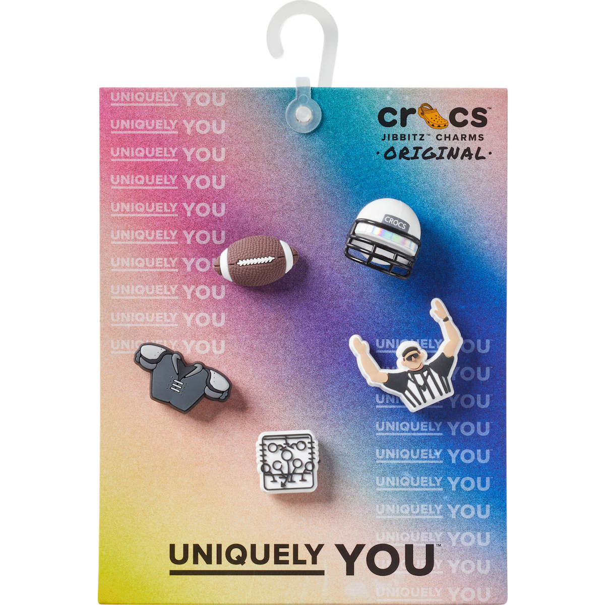 Pop some personality into your shoes with these Football Team 5 Pack Jibbitz™ charms. They’re the perfect addition to your favorite pairs of clogs, slides, and more.
