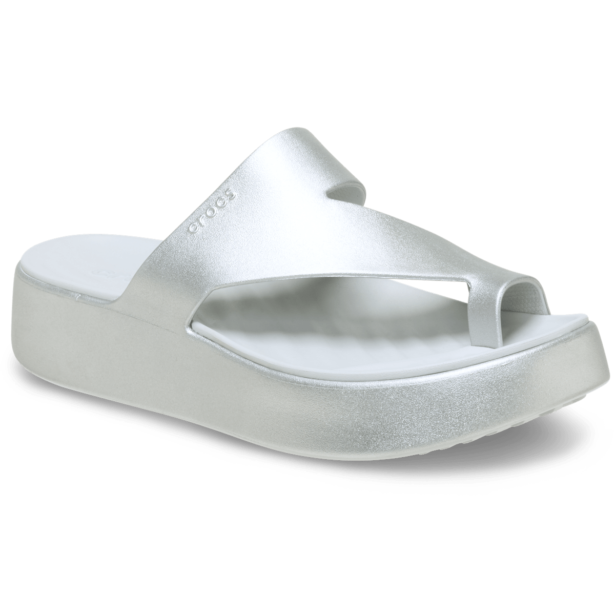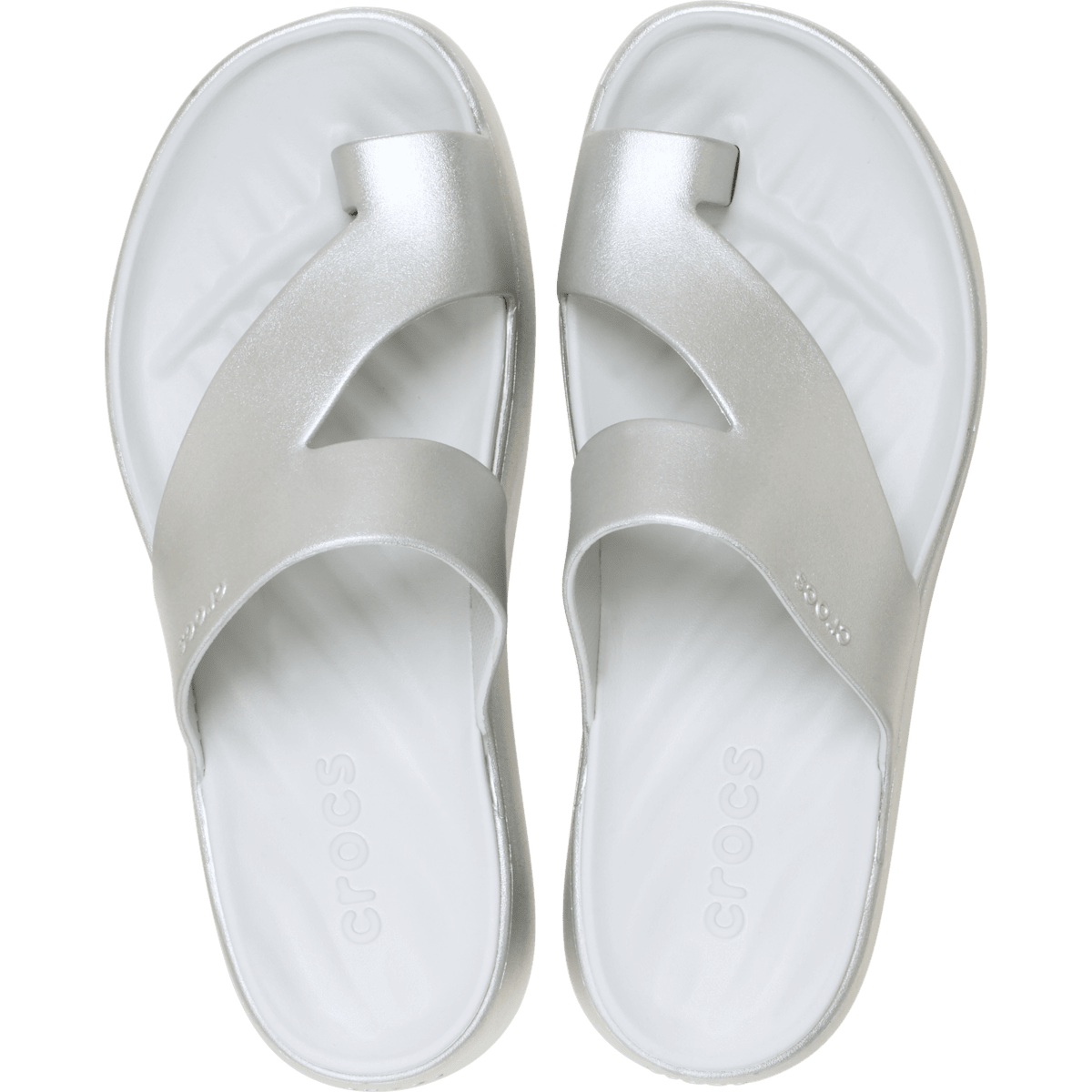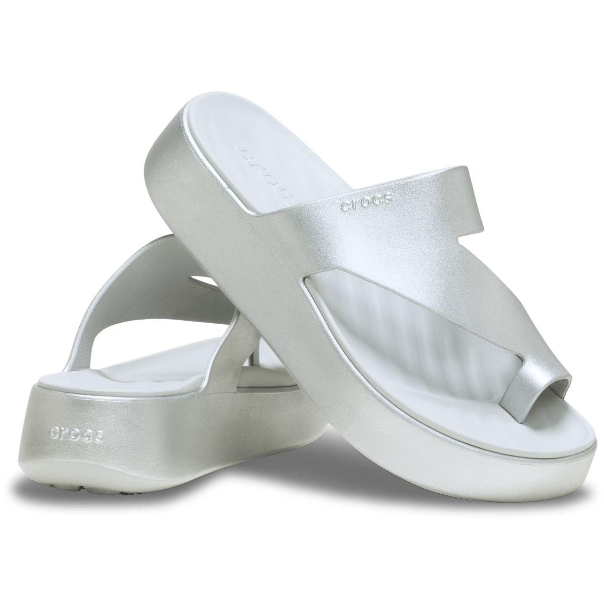 The Crocs Getaway Collection with new Free Feel Technology™ introduces our most seamless comfort innovation yet. The soft, flexible Free Feel Technology™ upper feels like nothing at all, floating on top of your foot and moving with you without restriction. With a variety of heights and stylish silhouettes, you will have a sandal for every occasion and all your getaways! This version features a stylish metallic treatment. Once you step in, you will never want to take them off.