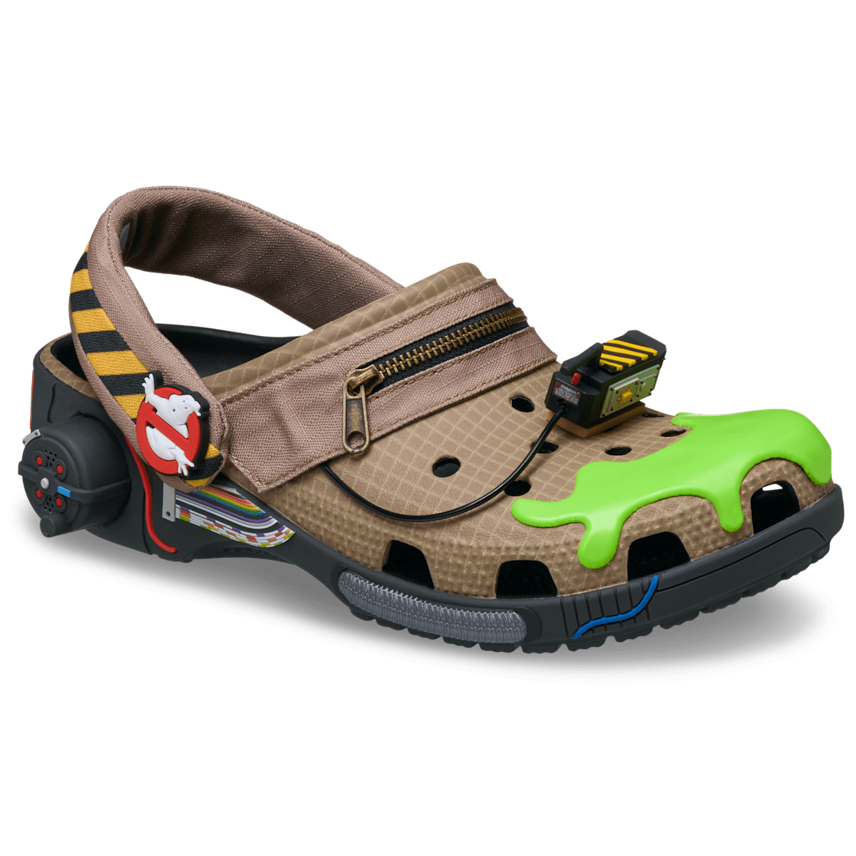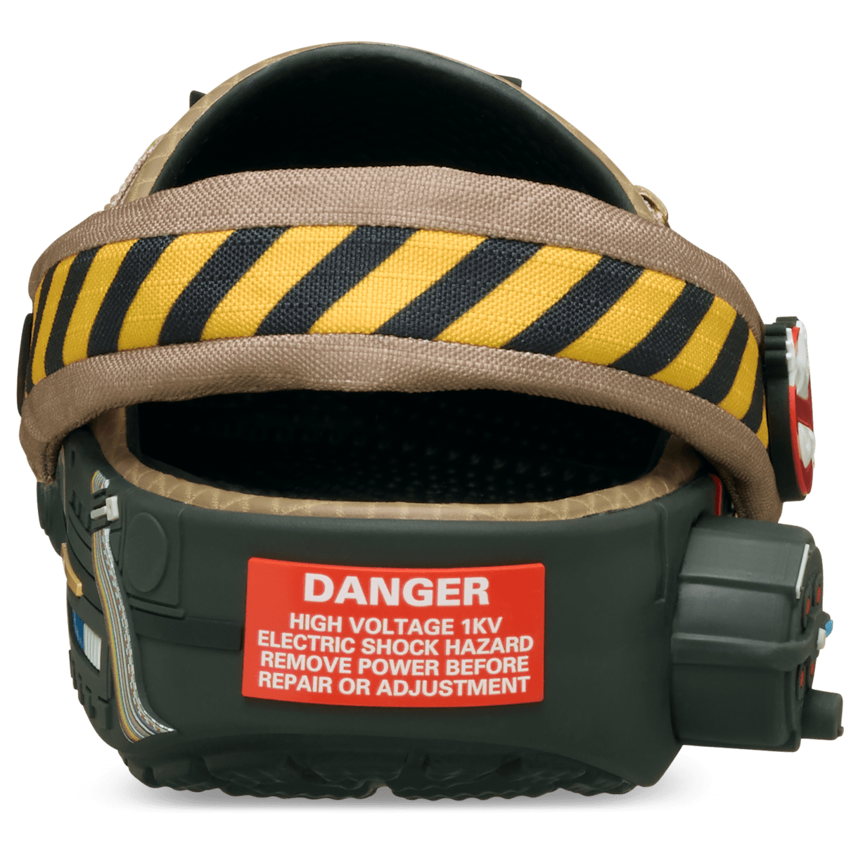 The P.K.E. meter is off the charts! Suit up and save your city from destruction in the Ghostbusters Classic Clog. Each pair is outfitted like the iconic flight suit and equipped with tools to take on the paranormal. A Ghost Trap Jibbitzâ„¢ charm and Proton Pack with touch-activated power-up sound are included on the right shoe, and Slimer sits on the left, waiting to be captured. Glow in the dark ectoplasm oozes over the toes and interchangeable name tags come with each pair so you can choose which Ghostbuster you want to be that day.