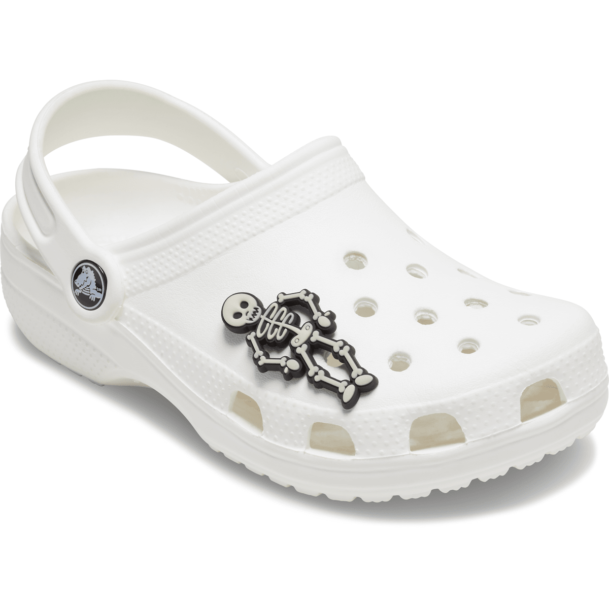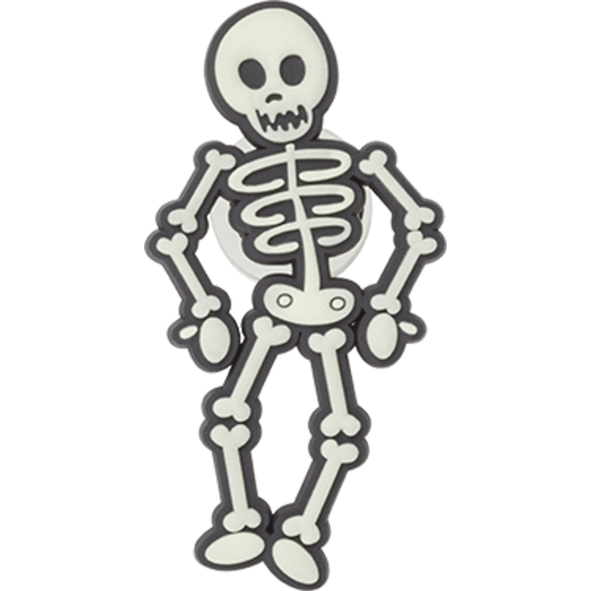 What’s spookier than a regular skeleton? One that glows in the dark. Like this Jibbitz™ charm. No bones about it. Not a toy. Not intended for children under 3 years of age.
