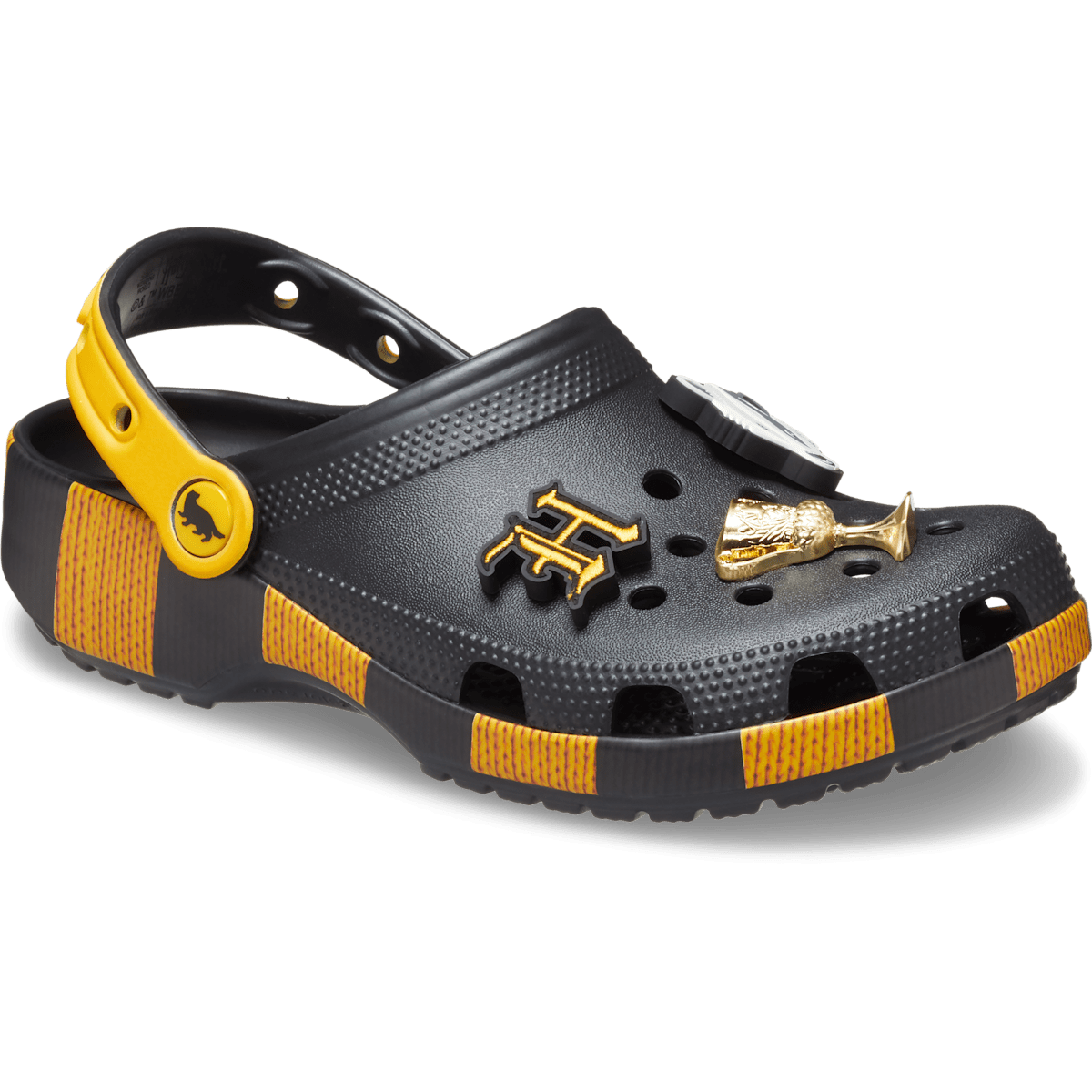 Patient. Dedicated. Loyal. Show your Hufflepuff colors in the Classic Clog, with a printed sole inspired by the yellow and black House scarf, along with exclusive Jibbitz™ charms. Do what is nice — get yourself a pair.