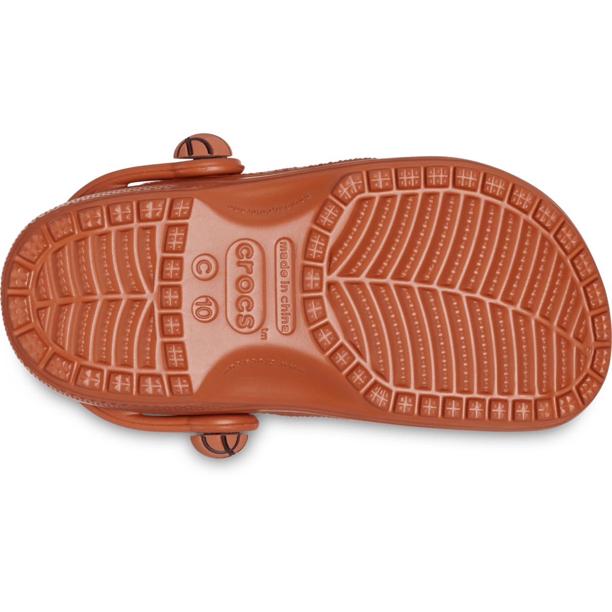 This version of the iconic clog is specially designed for young basketball players and fans of basketball. Featuring a unique upper inspired by the iconic basketball design, and basketball inspired rivets and fixed patch on the backstrap, these clogs will help kids show off their love of basketball. Plus, a basketball puzzle graphic on the insoles helps kids put the shoe on the correct foot. They’re great for everyday wear, as well as after practice and game days. Crocs offers a variety of Classic Clogs for Kids and Toddlers that feature original character-rich graphics and other inspired designs to help kids express themselves and engage new friends, resulting in more fun for the little ones.