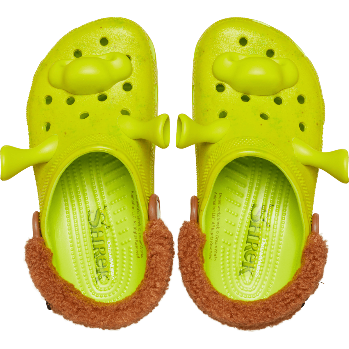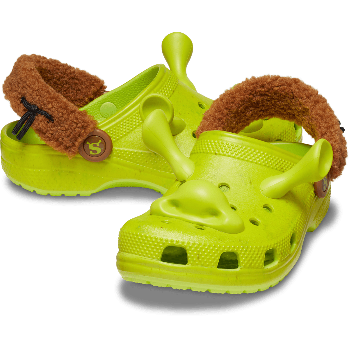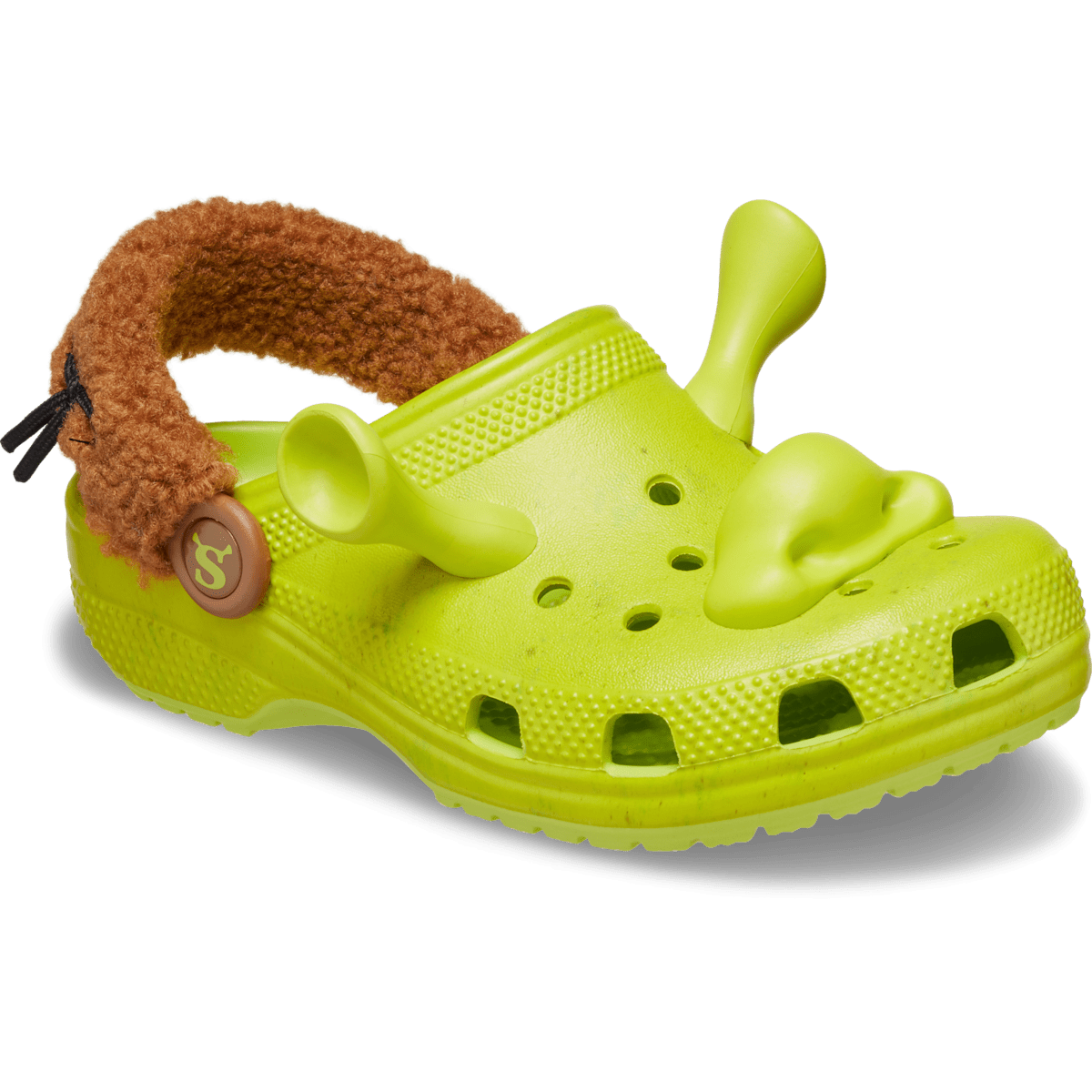 The wait is over for the most wonderfully hideous Classic Clogs. An ode to your favorite ogre, each pair features Shrek’s iconic nose, ears, and green speckled skin bringing this beloved character to life. Plus, the fuzzy back strap and Iconic Crocs Comfort™ will keep you comfy from your swamp to Duloc and back. Step in and let the adventures begin.