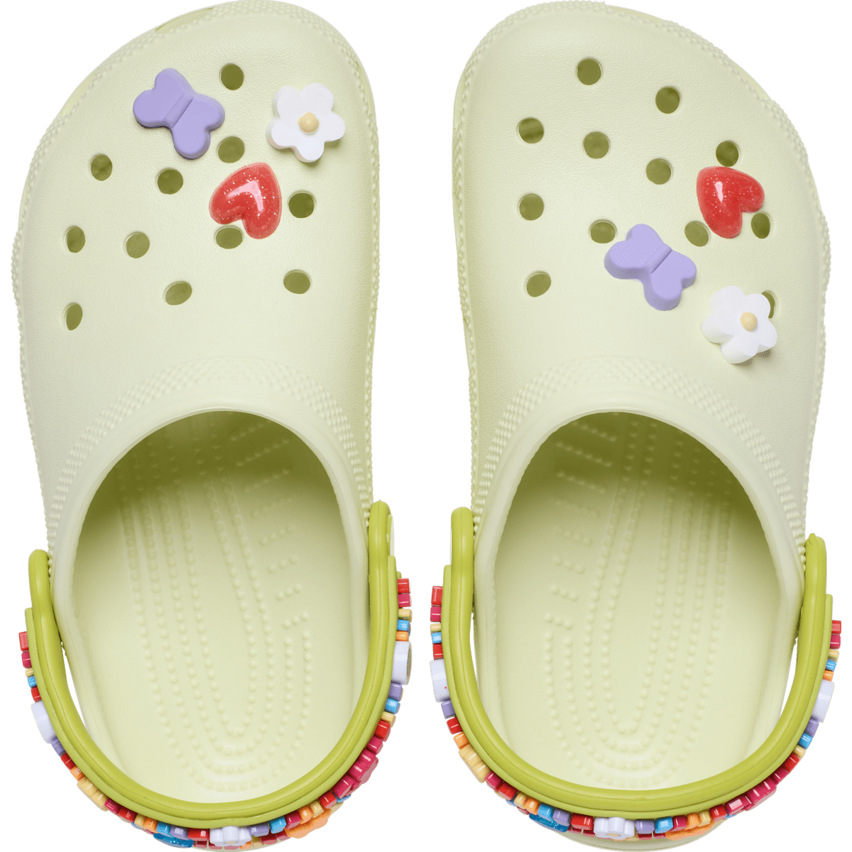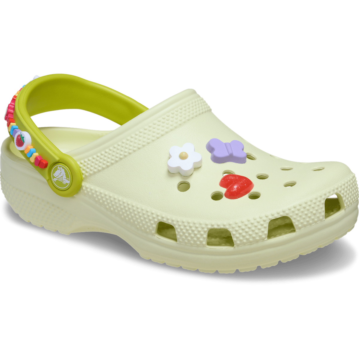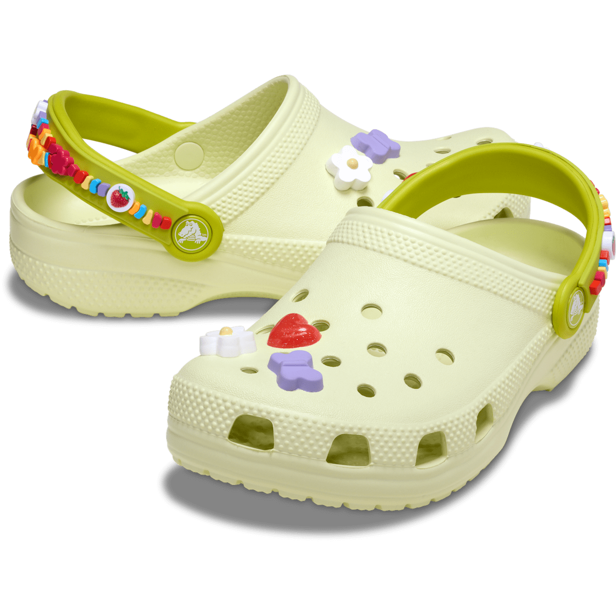 This version of the iconic clog features a friendship bracelet embellishment on the heel strap, plus an included set of fun Jibbitz™ charms. These clogs help kids show off their creativity, and Croslite™ foam construction keeps them light and easy to wear. Crocs offers a variety of Classic Clogs for Kids and Toddlers that feature inspired designs to help kids express themselves and engage new friends, resulting in more fun.