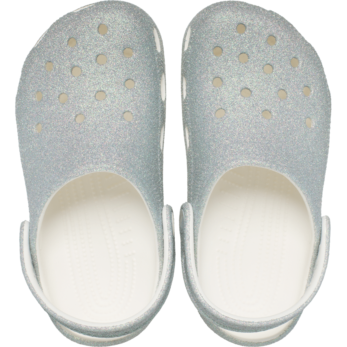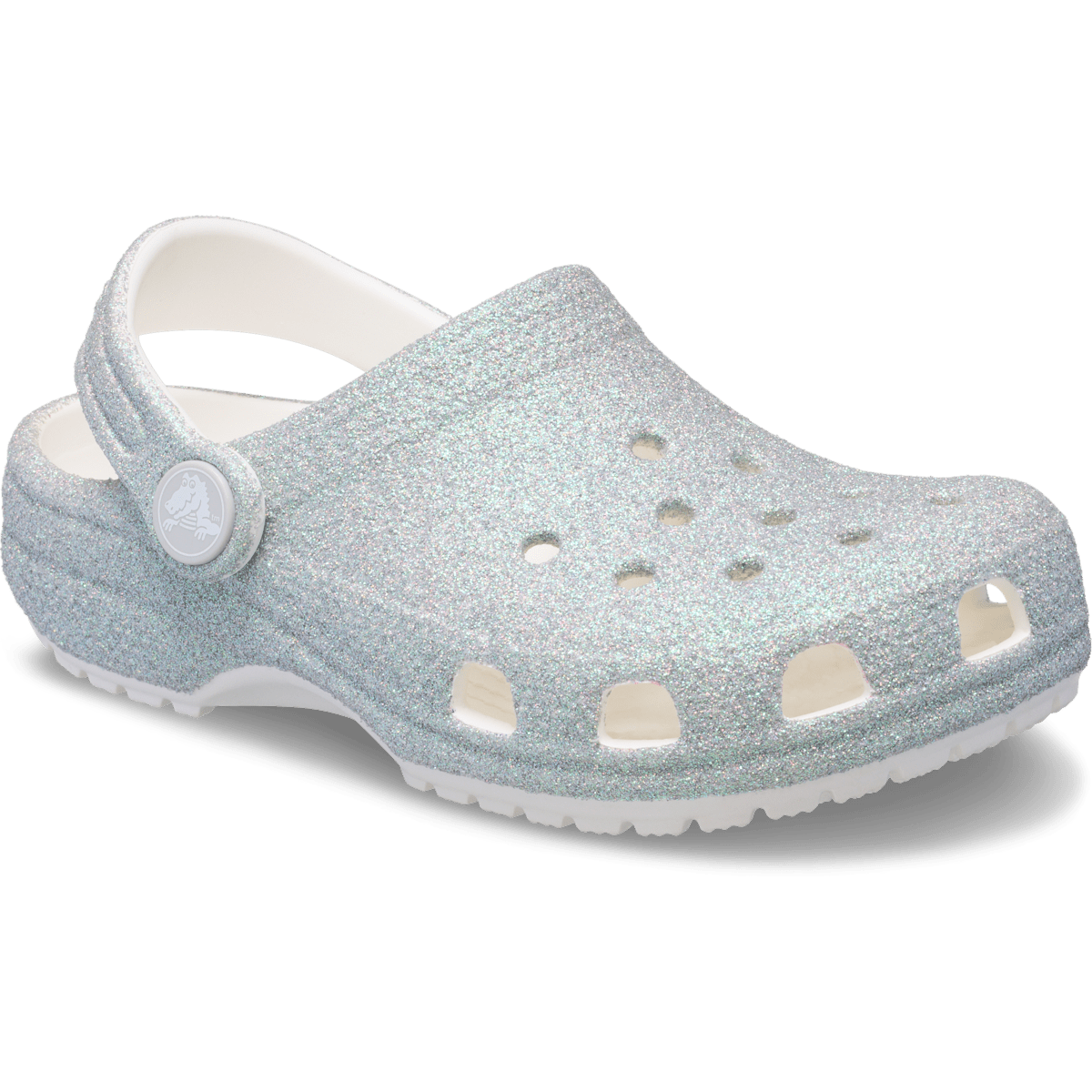 A fun new iridescent glitter treatment provides added style to this version of the iconic clog. The sparkly glitter changes color when you look at it from different angles, making these extra fun, and Croslite™ foam construction keeps them light and easy to wear. Also available for adults and toddlers, so you can get matching pairs for a fun full family moment. Grounded in comfort, spiked with personality. Sparkle on!