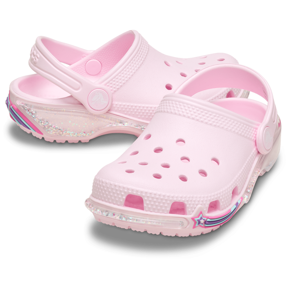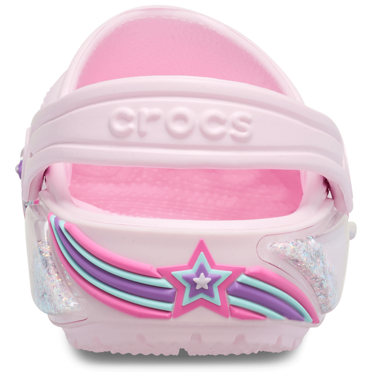 Great for kids who love sparkle and stars! This fun clog features loose glitter within a clear patch on the sole that shakes as they walk, along with a colorful rainbow and star embellishment. Crocs offers a variety of Classic Clogs for Kids and Toddlers that feature inspired designs to help kids express themselves and engage new friends, resulting in more fun.