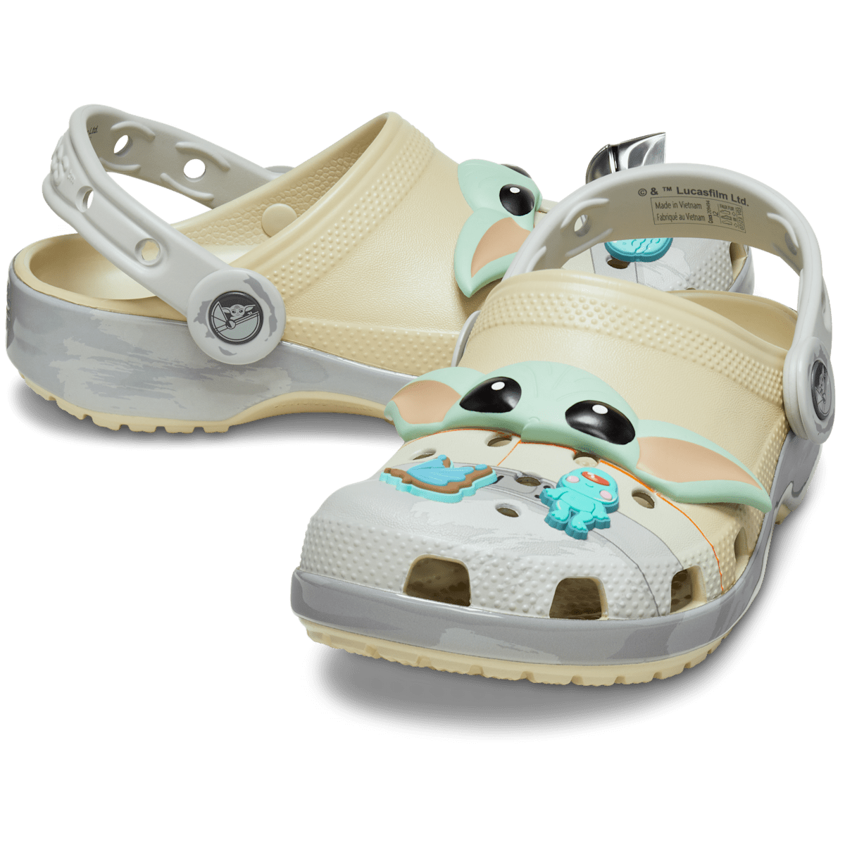 Kids can bring the magic of Star Wars with them wherever they go with this Grogu themed version of the Classic Clog. They’ll enjoy a Grogu embellishment and themed design, plus a collection of Mandalorian Jibbitz™ charms, and the Croslite™ foam construction keeps them light and easy to wear. Crocs offers a variety of Classic Clogs for Kids and Toddlers that feature original character-rich graphics and other inspired designs to help kids express themselves and engage new friends, resulting in more fun. These unique clogs are perfect for young fans of Baby Yoda and the Star Wars saga.