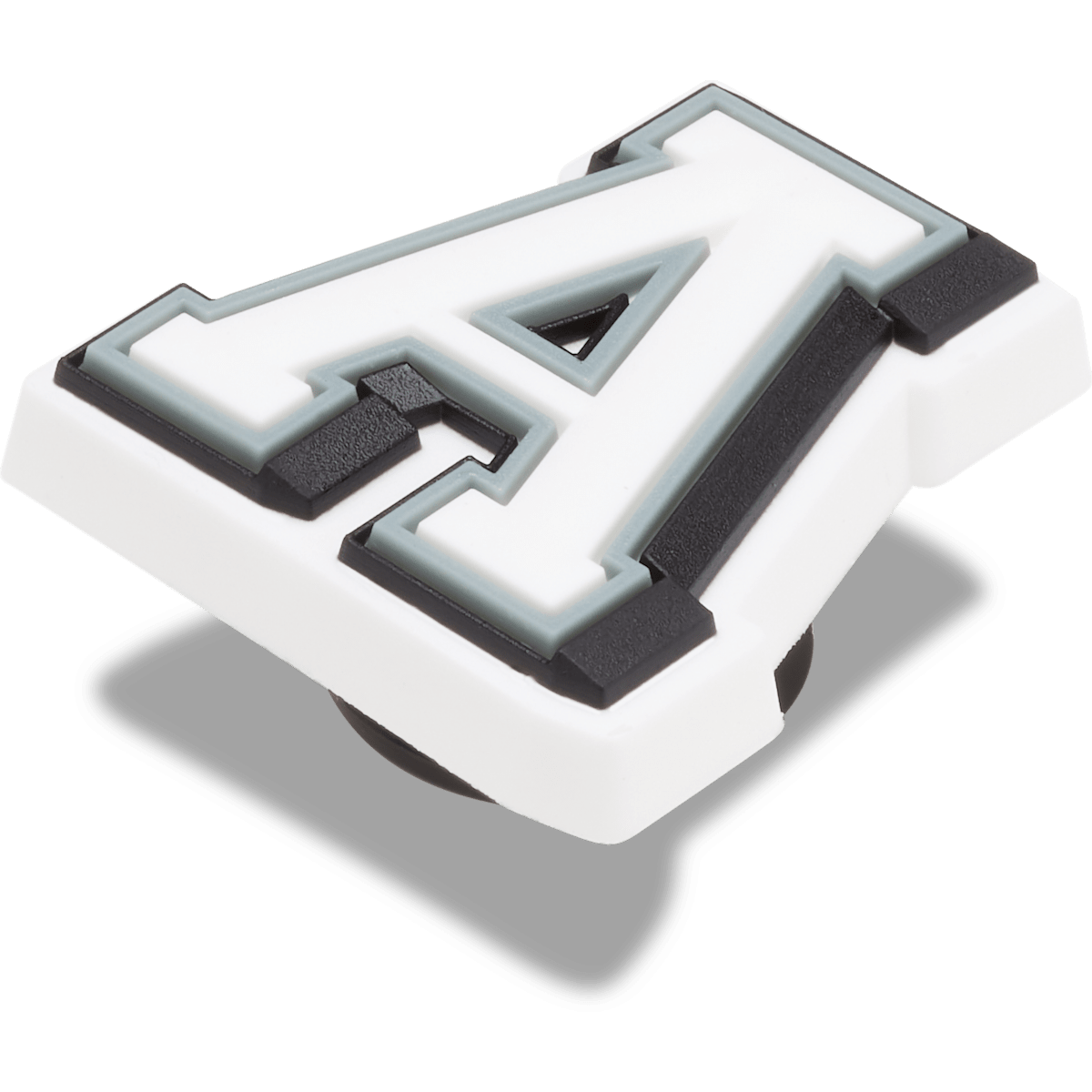 Use these varsity-style Jibbitzâ„¢ charms to spell your name or initials, show off your school or team pride, or write just about anything else! The white letter has a grey outline and a black shadow, so you can be sure that everyone will see these classic letters.