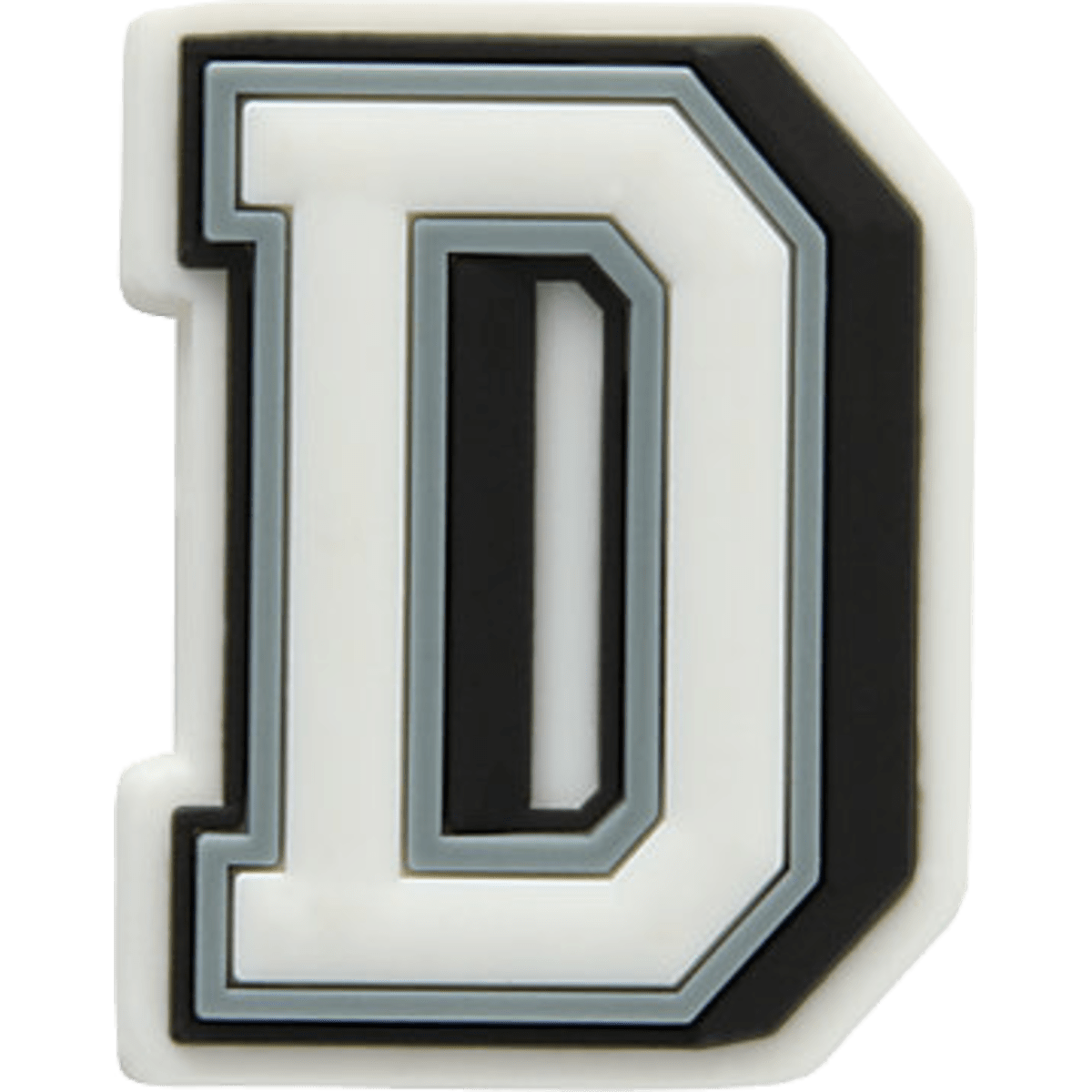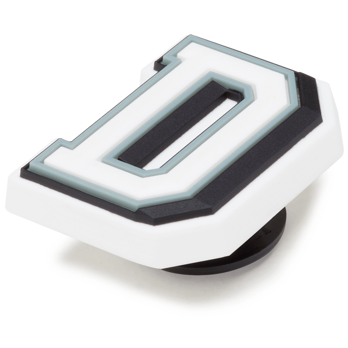 Use these varsity-style Jibbitzâ„¢ charms to spell your name or initials, show off your school or team pride, or write just about anything else! The white letter has a grey outline and a black shadow, so you can be sure that everyone will see these classic letters.