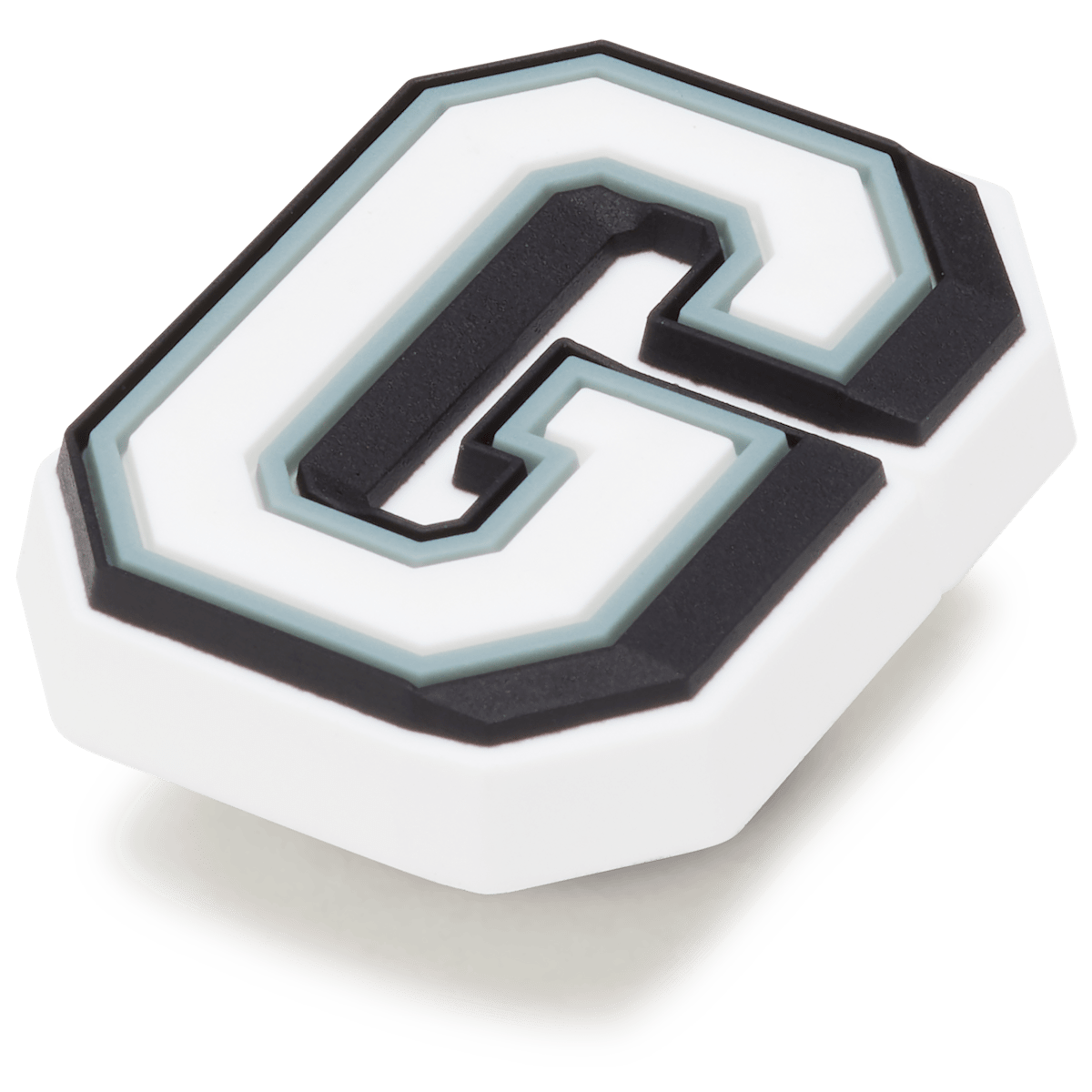 Use these varsity-style Jibbitz™ charms to spell your name or initials, show off your school or team pride, or write just about anything else! The white letter has a grey outline and a black shadow, so you can be sure that everyone will see these classic letters.