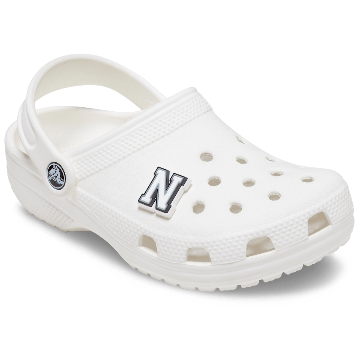 Use these varsity-style Jibbitz™ charms to spell your name or initials, show off your school or team pride, or write just about anything else! The white letter has a grey outline and a black shadow, so you can be sure that everyone will see these classic letters.