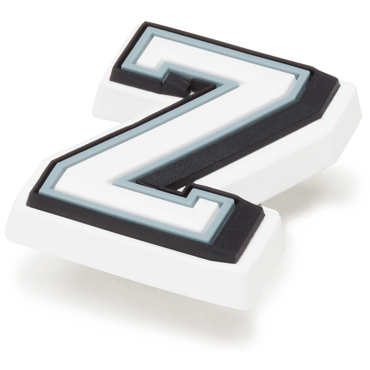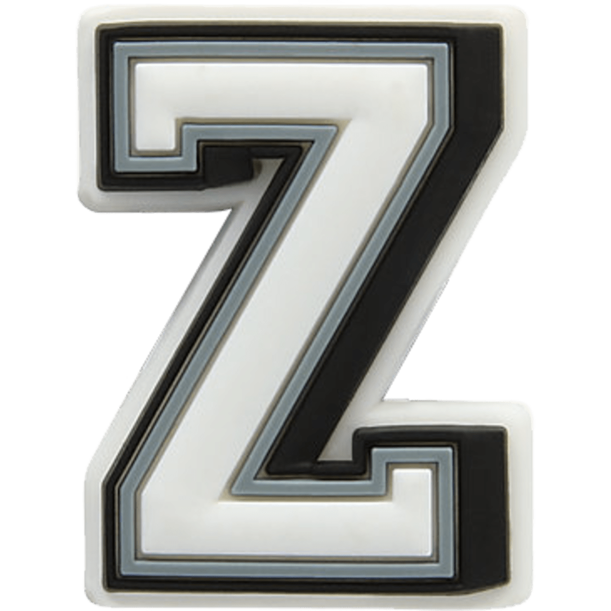 Use these varsity-style Jibbitz™ charms to spell your name or initials, show off your school or team pride, or write just about anything else! The white letter has a grey outline and a black shadow, so you can be sure that everyone will see these classic letters.