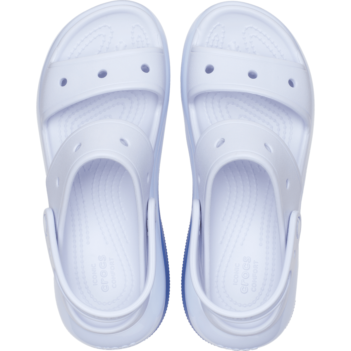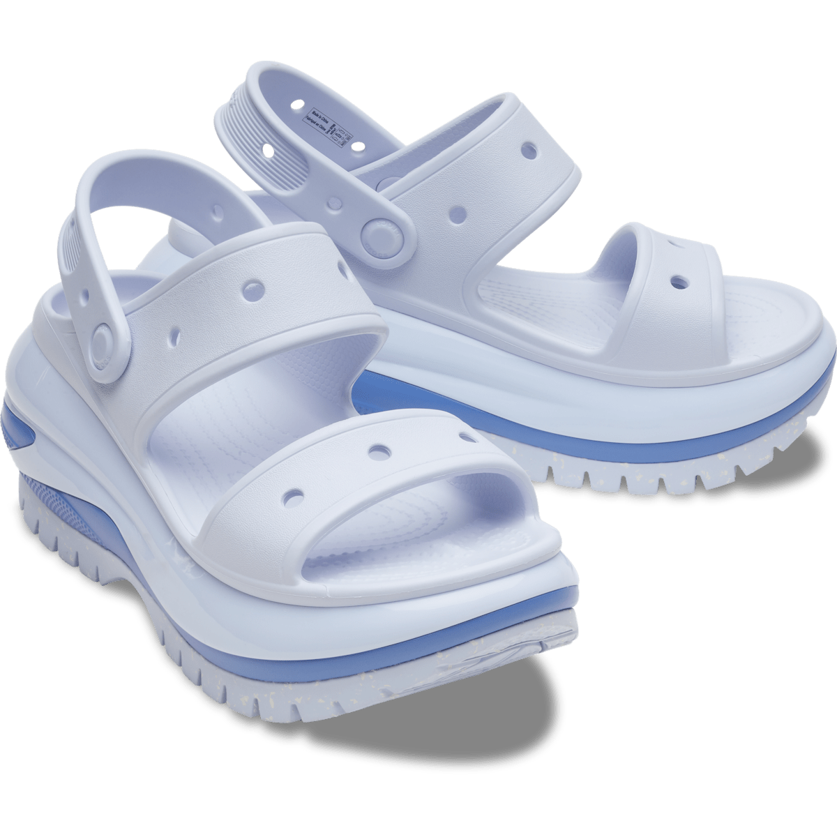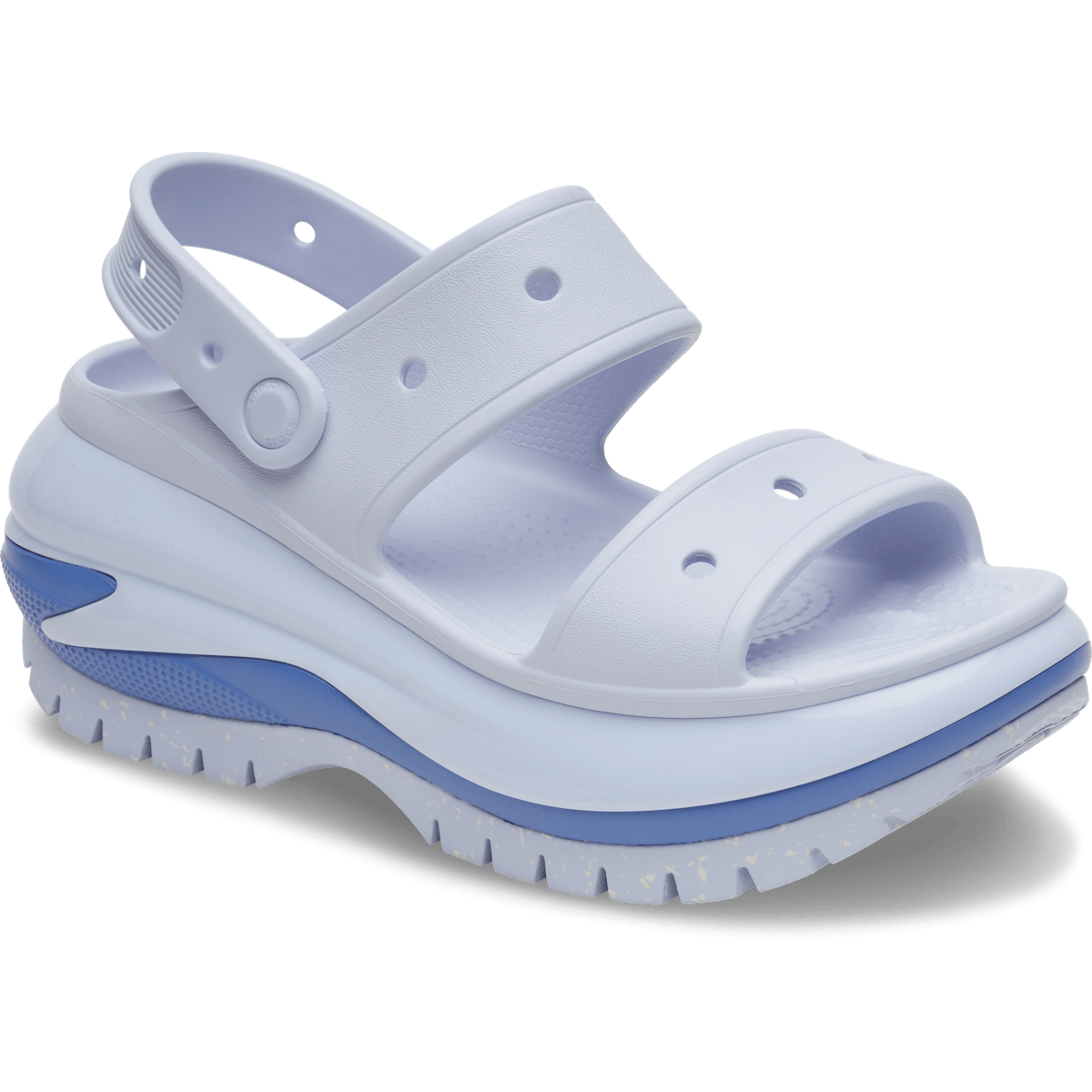 The look and feel of our Classic Mega Crush Clog is now available in sandal form. Introducing the Classic Mega Crush Sandal, featuring an enhanced rubber tread, updated detailing around the outsole and a platform ready to take any outfit to the next level. A two-strap upper and secure backstrap help ensure a secure fit, while boasting holes for personalization with Jibbitzâ„¢ charms. Are you ready for your new crush?