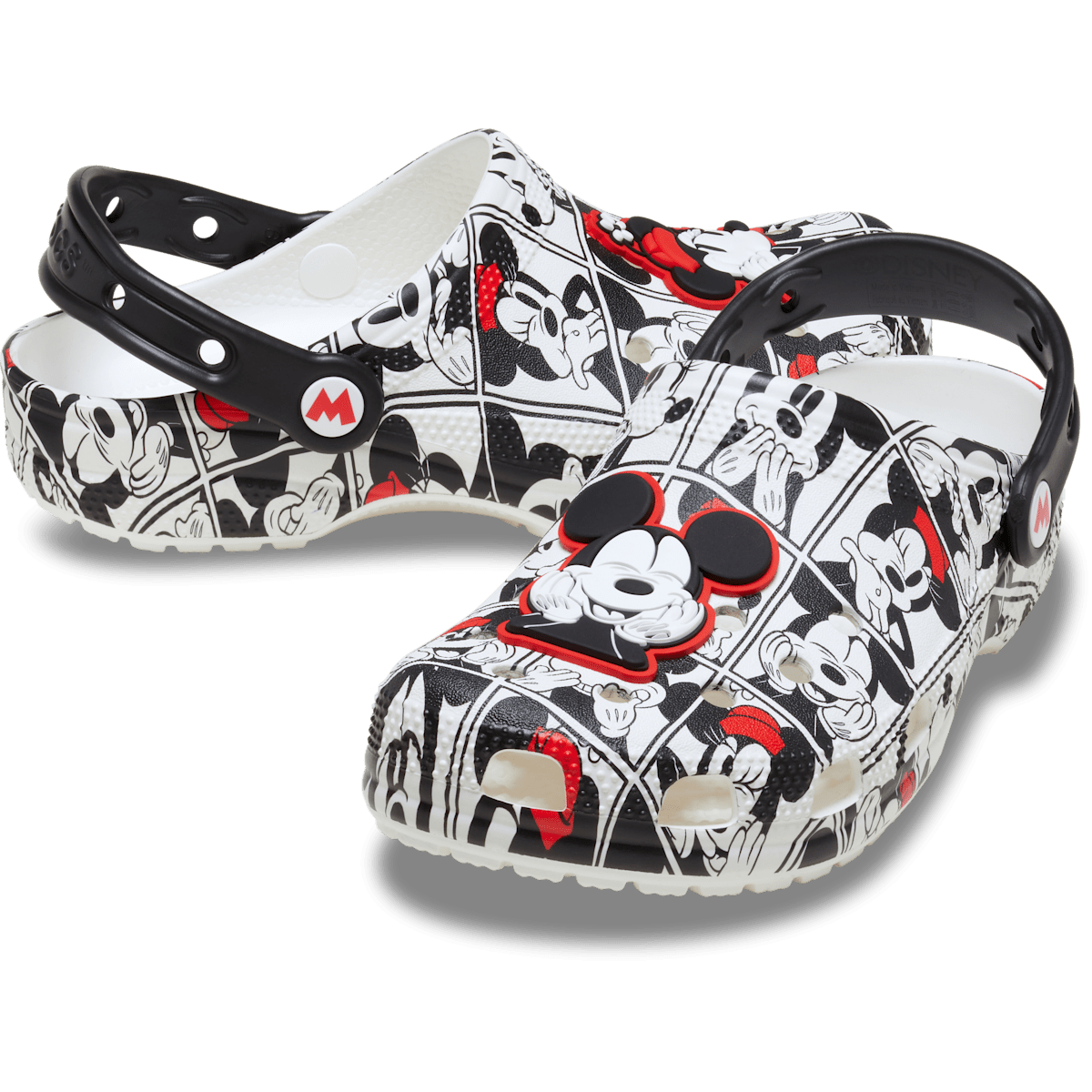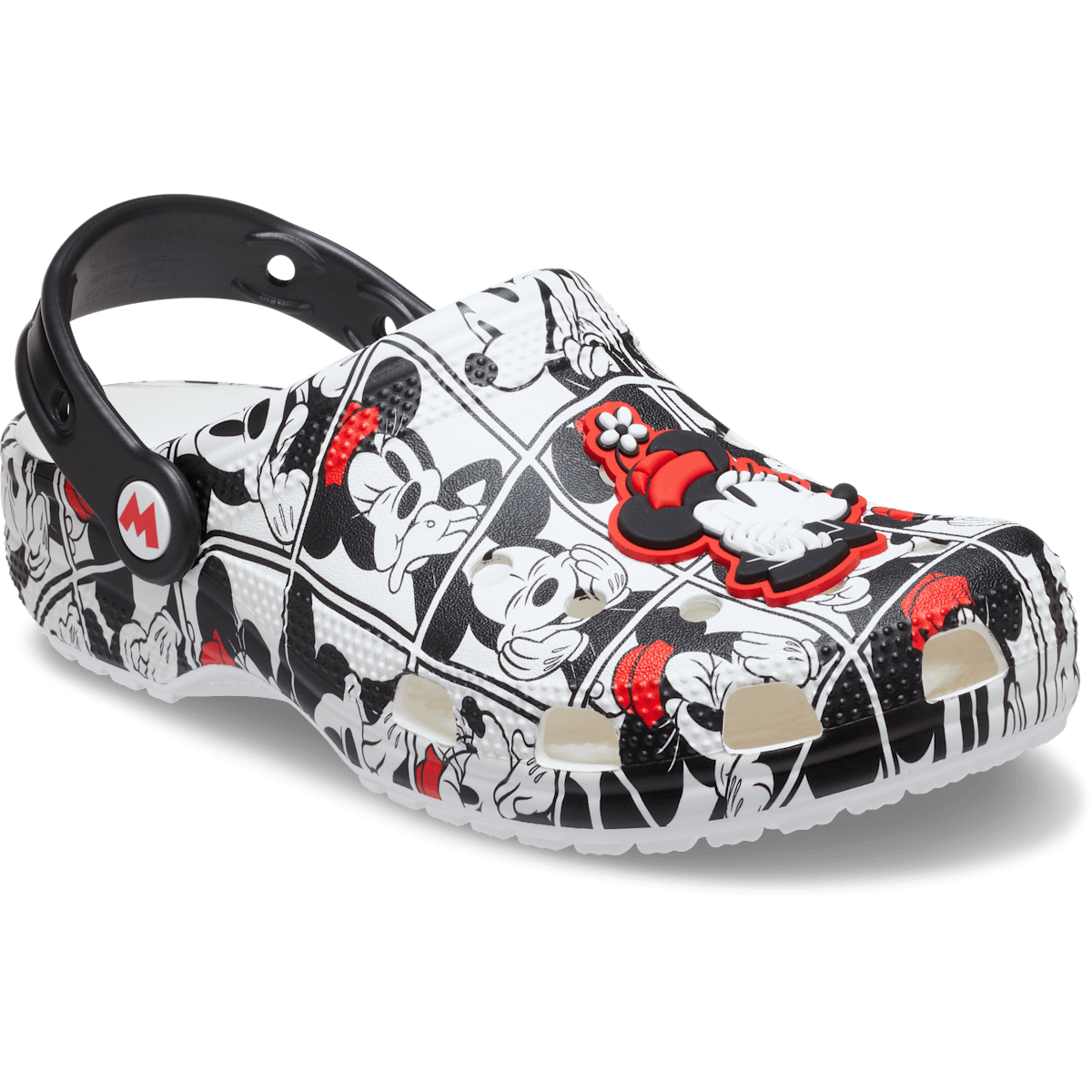 The iconic Mickey and Minnie Mouse come to life on this playful version of the Classic Clog. A graphic featuring their infectious smiles and expressions cover the clog, and each one is fixed with an oversized Mickey and Minnie Mouse charm. Plus, there’s plenty of room to add your own personalization with Jibbitz™ charms.