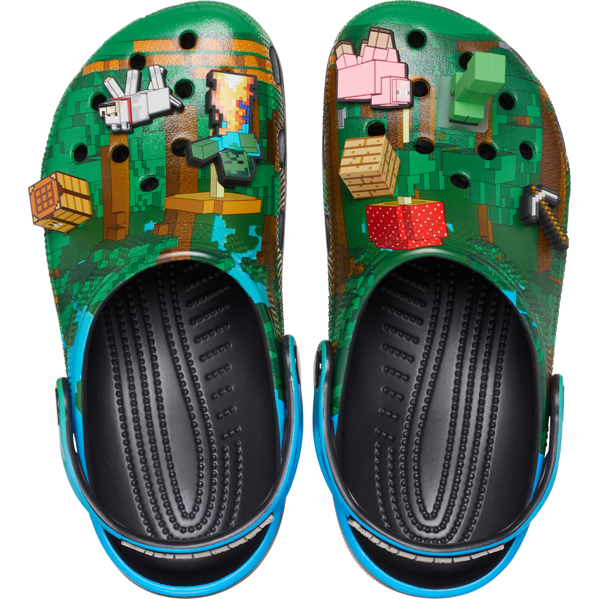 Build your style one block…and Croc…at a time. In the Minecraft Classic Clog. Featuring an allover core print with exclusive Minecraft Jibbitzâ„¢ charms, they’ll have you ready to explore almost any terrain. Add a pair to your inventory.