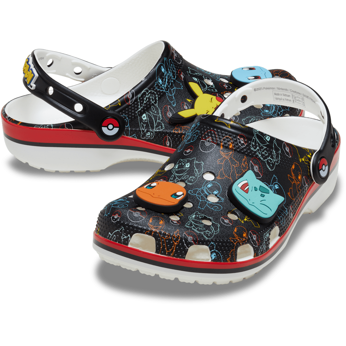 Calling all Trainers! The Pokémon Classic Clog is a fan-favorite silhouette, printed with fan-favorite characters. And oversized Jibbitz™ charms level up the look even more!