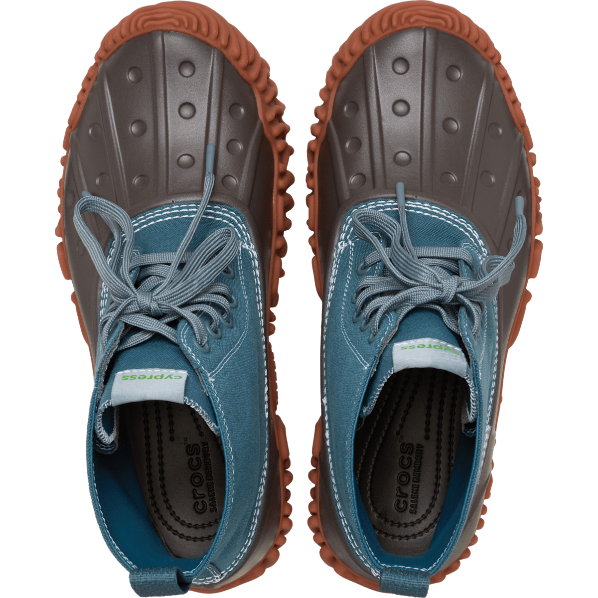 A reimagining of a generational classic, the Salehe Bembury Cypress Boot takes the duck boot silhouette and adds modern styling. This tri-color boot features a green canvas upper that meets an espresso rubber top and hazelnut sole. Salehe Bembury’s fingerprint-inspired ridged sole is the definitive detail of the Pollex collection and wraps the base of the boot. This blend of rugged and water-resistant materials will have you covered in the elements for a silhouette that’s as functional as it is comfortable.
