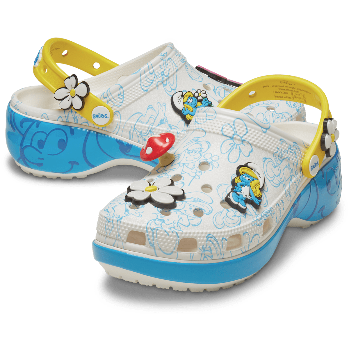 Every Smurf is in love with Smurfette. And you’ll fall in love with these Smurfs Platform Clogs, inspired by the blue-tiful best friend. Featuring an allover Smurfette print and exclusive Jibbitz™ charms, they’re absosmurfly charming.
