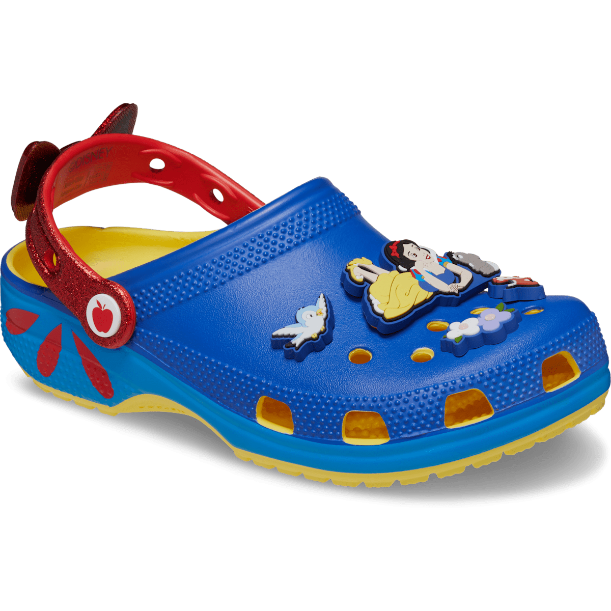 Childhood dreams and fairy-tale scenes come to life in the Snow White Classic Clog. Inspired by Snow White’s iconic red, yellow, and blue dress, these clogs are made to make you feel like a real-life princess.