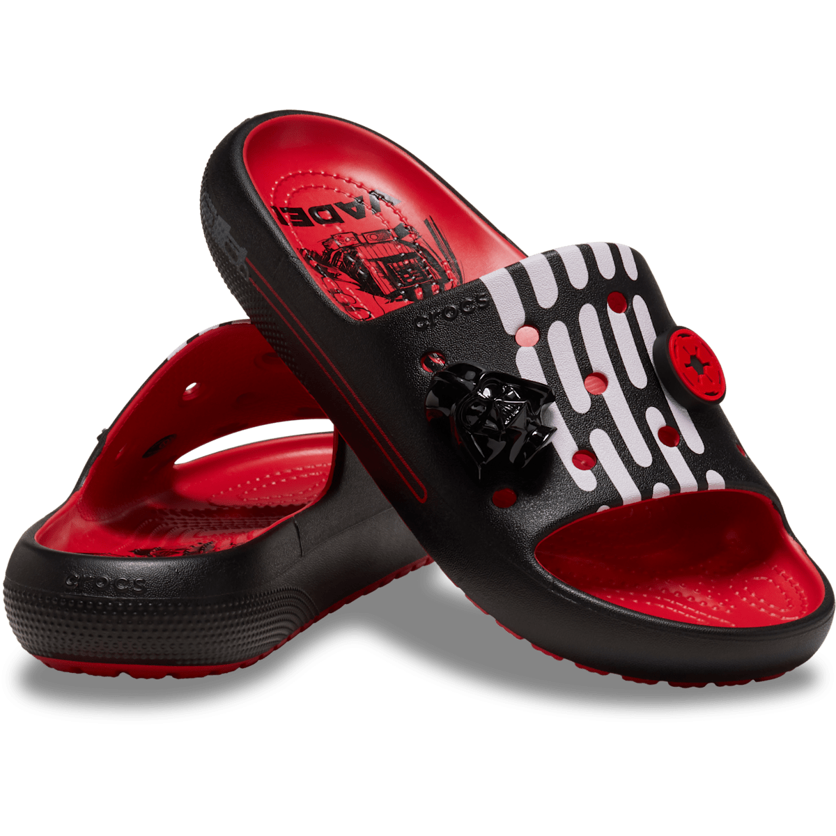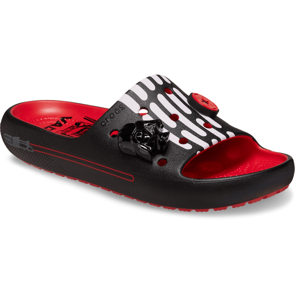 Embrace the dark side in this version of our new and improved Classic Slide. You’ll enjoy an iconic Star Wars graphic, a collection of Star Wars Darth Vader themed Jibbitz™ charms, and an updated, modernized silhouette that cups your whole foot in our Iconic Crocs Comfort™. Deep cupped Croslite™ foam footbeds will keep you comfortably supported as the Darth Vader themed design lets you show off your enthusiasm for Darth Vader and the Star Wars saga.