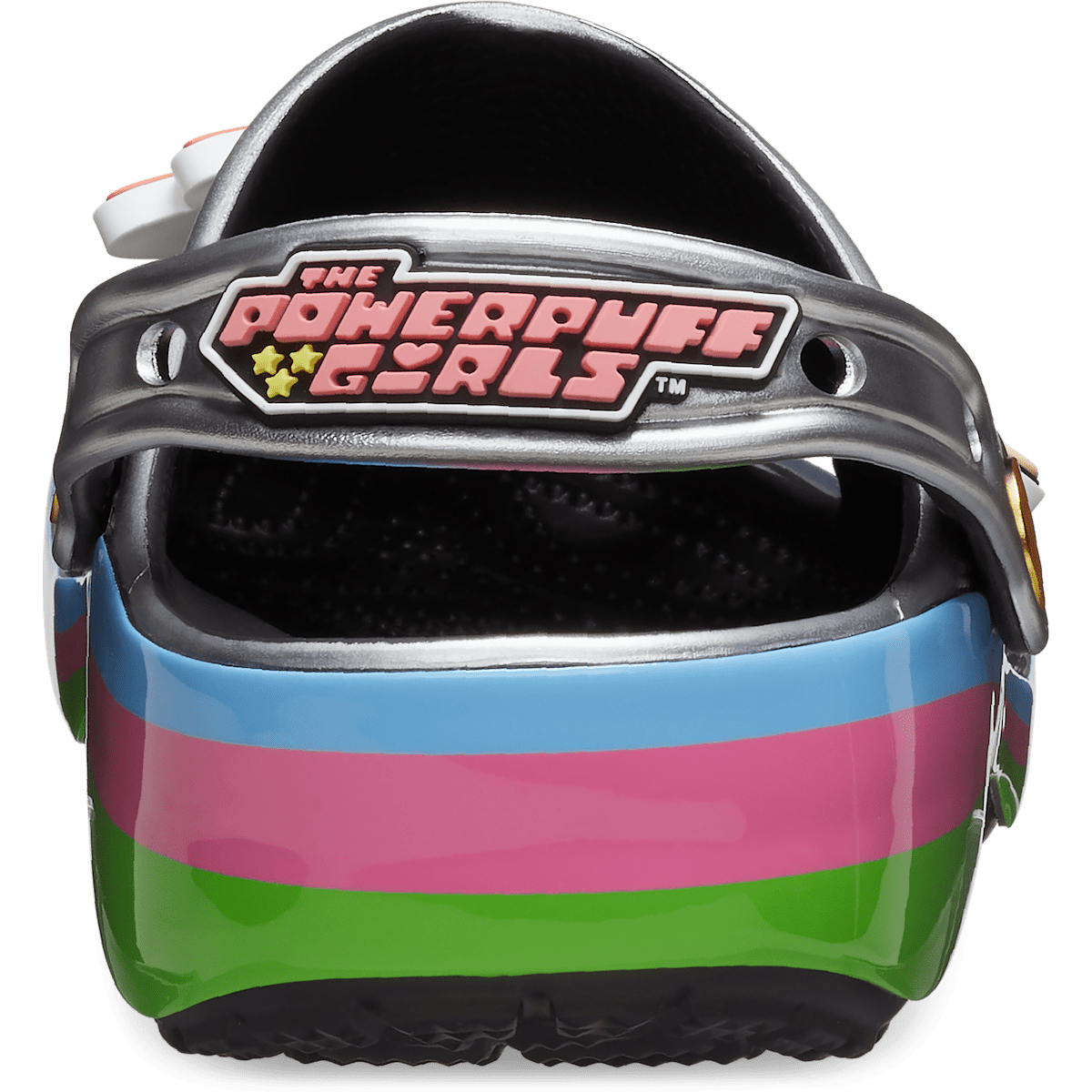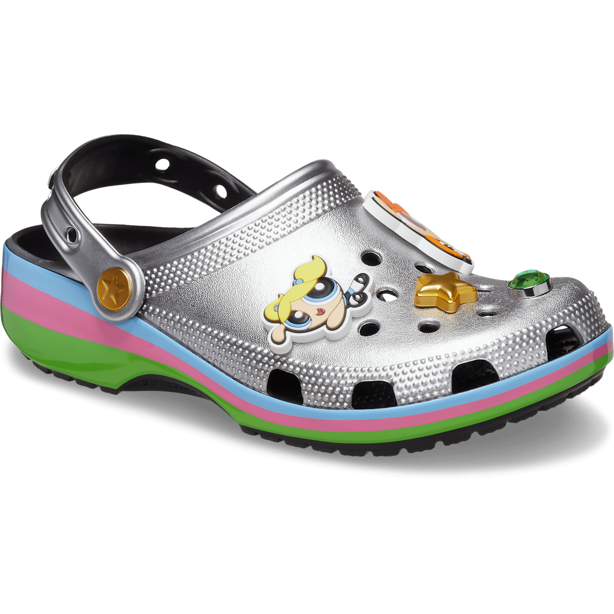 Team up with The Powerpuff Girls with these exclusive Crocs. Stay comfortable yet stylish during all your missions. These silver Crocs feature a playful and bold design. You can customize them with The Powerpuff Girls Jibbitzâ„¢ charms and keep your favorite heroines close to your feet. Discover your superpower with this latest release.