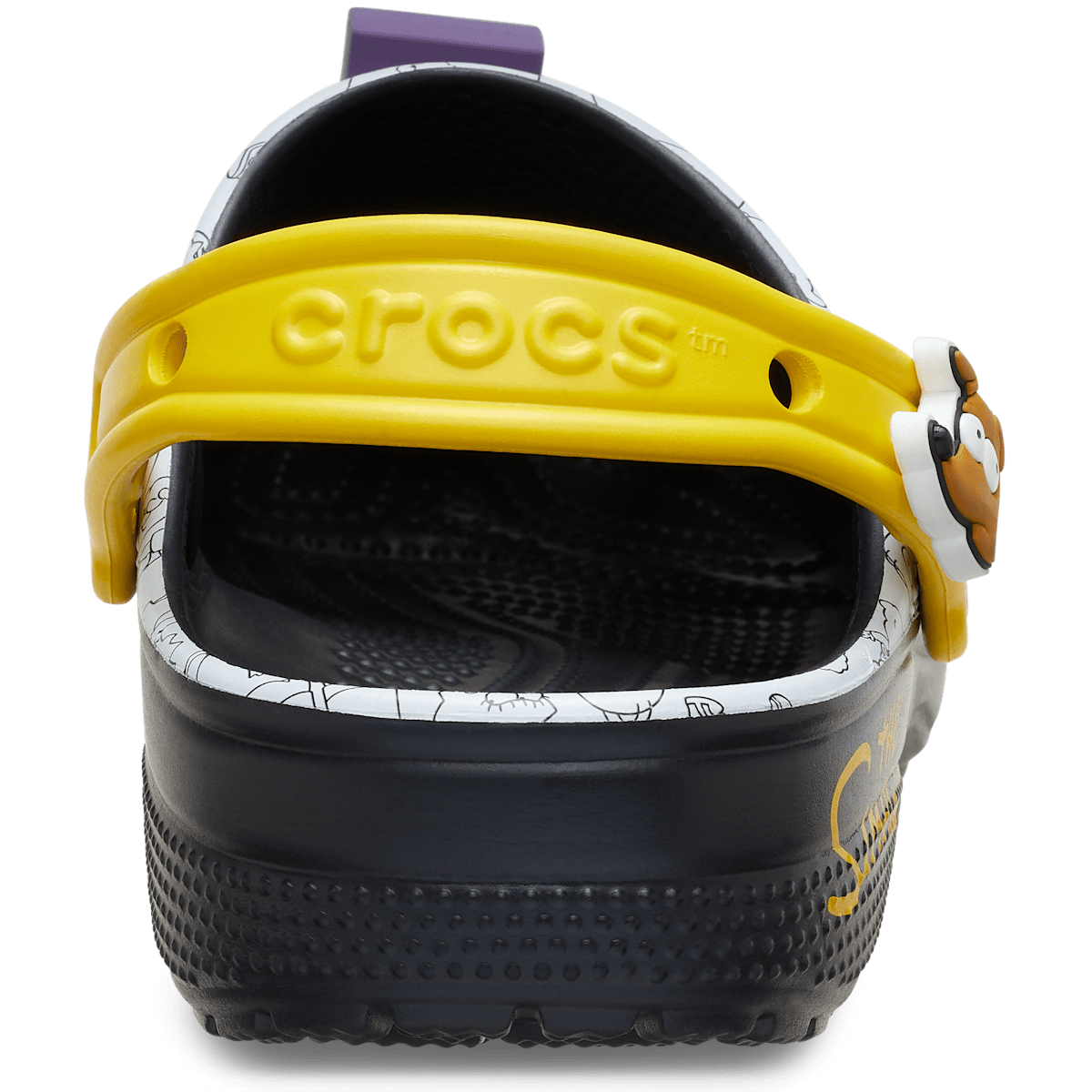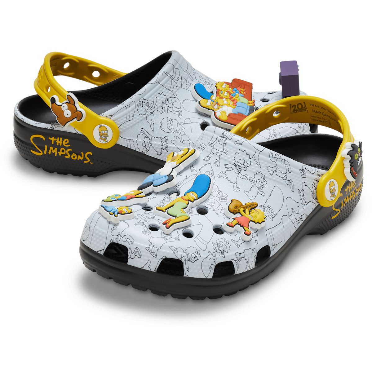 Fresh from Springfield, The Simpsons Classic Clog features your favorite family from Evergreen Terrace. This comfortable clog features a bold black and white print with Homer, Marge, Bart, Lisa, and Maggie character graphics in an array of animated gestures. A bold yellow backstrap brings a pop of color, while seven exclusive Jibbitzâ„¢ add nostalgic charm.