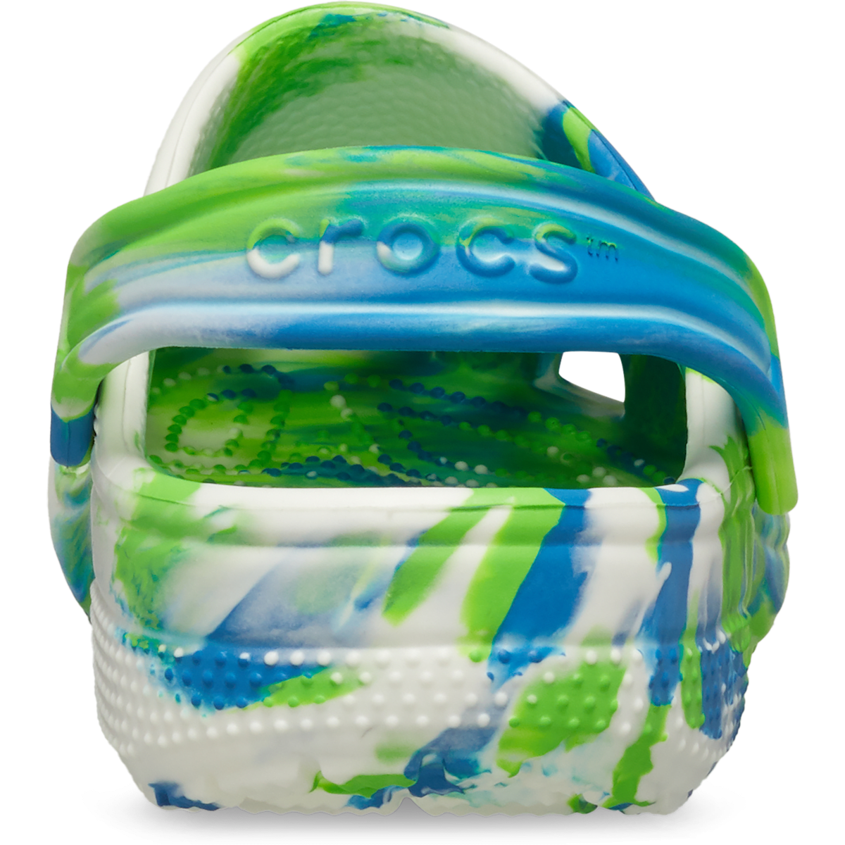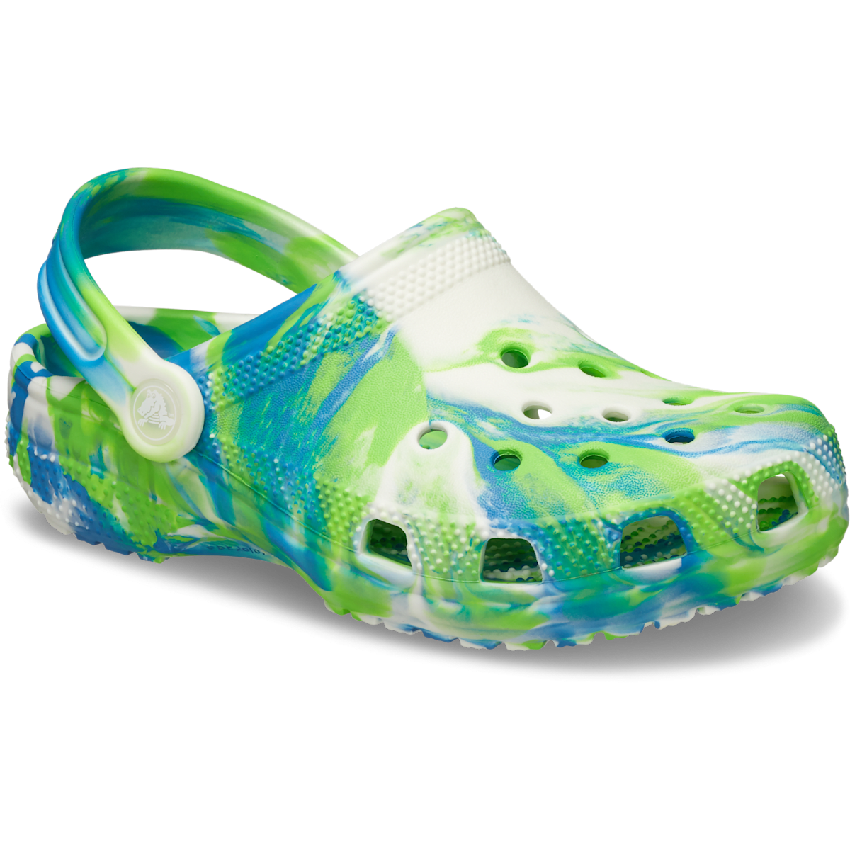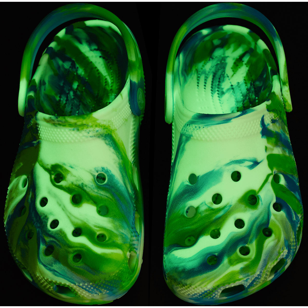 This version of the iconic clog features the new glow-in-the-dark version of the popular marbled treatment, helping kids show off their fun and creative spirit. This new marbled Crosliteâ„¢ material creates a colorful glow-in-the-dark effect that is completely unique. While all marbled shoes have the same wavy look, no two shoes are exactly alike. Crocs offers a variety of Classic Clogs for Kids and Toddlers that feature inspired designs to help kids express themselves and engage new friends, resulting in more fun for the little ones.