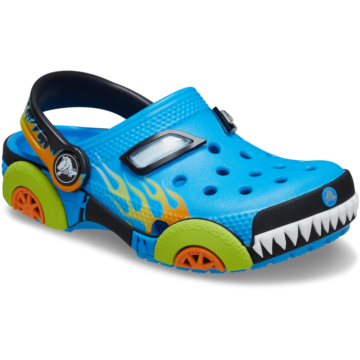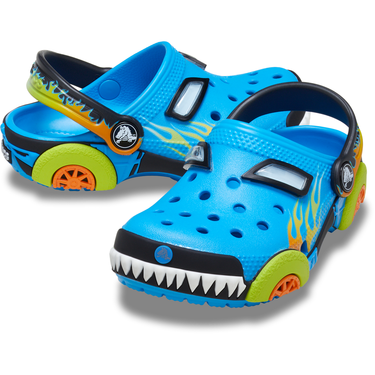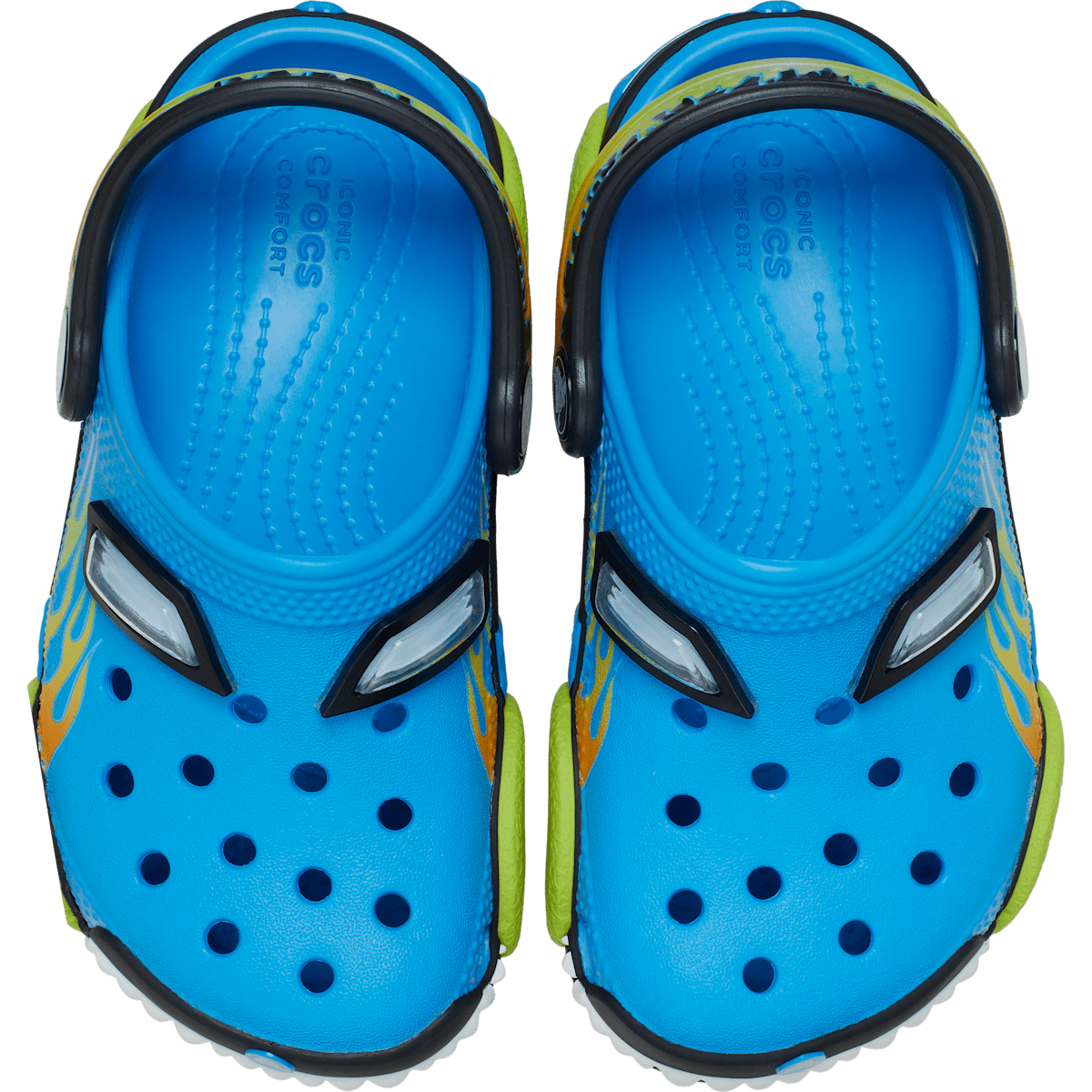 Rev up the engines! With a fun monster truck design on the upper and wraps on the soles featuring 3D monster truck wheels, your little ones can show off their love for these big trucks, or even pretend like they become a monster truck, when they put on these shoes. Crocs offers a variety of Classic Clogs for Kids and Toddlers that feature original character-rich graphics and other inspired designs to help kids express themselves and engage new friends, resulting in more fun for the little ones.
