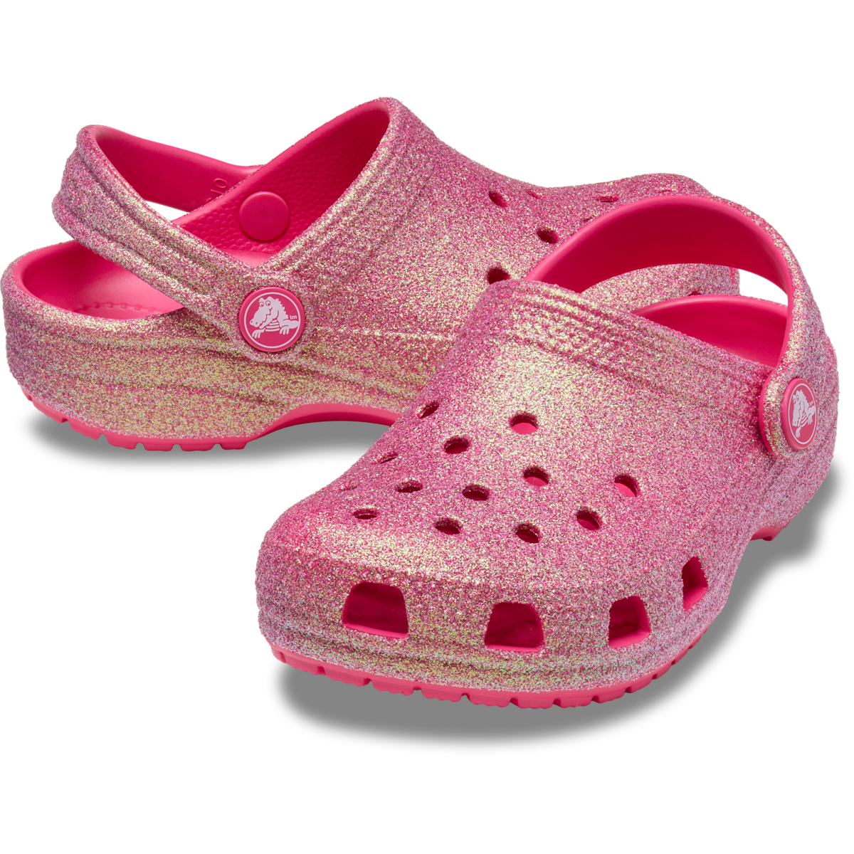Little ones will love the new iridescent glitter treatment and iconic Crocs comfort in the Toddler Classic Iridescent Glitter Clog. The sparkly glitter changes color when you look at it from different angles, making these extra fun, and Croslite™ foam construction keeps them light and easy to wear. Also available in adult sizes for you, as well as kids’ sizes, so you can get matching pairs for a fun full family moment. Grounded in comfort, spiked with personality. Sparkle on!